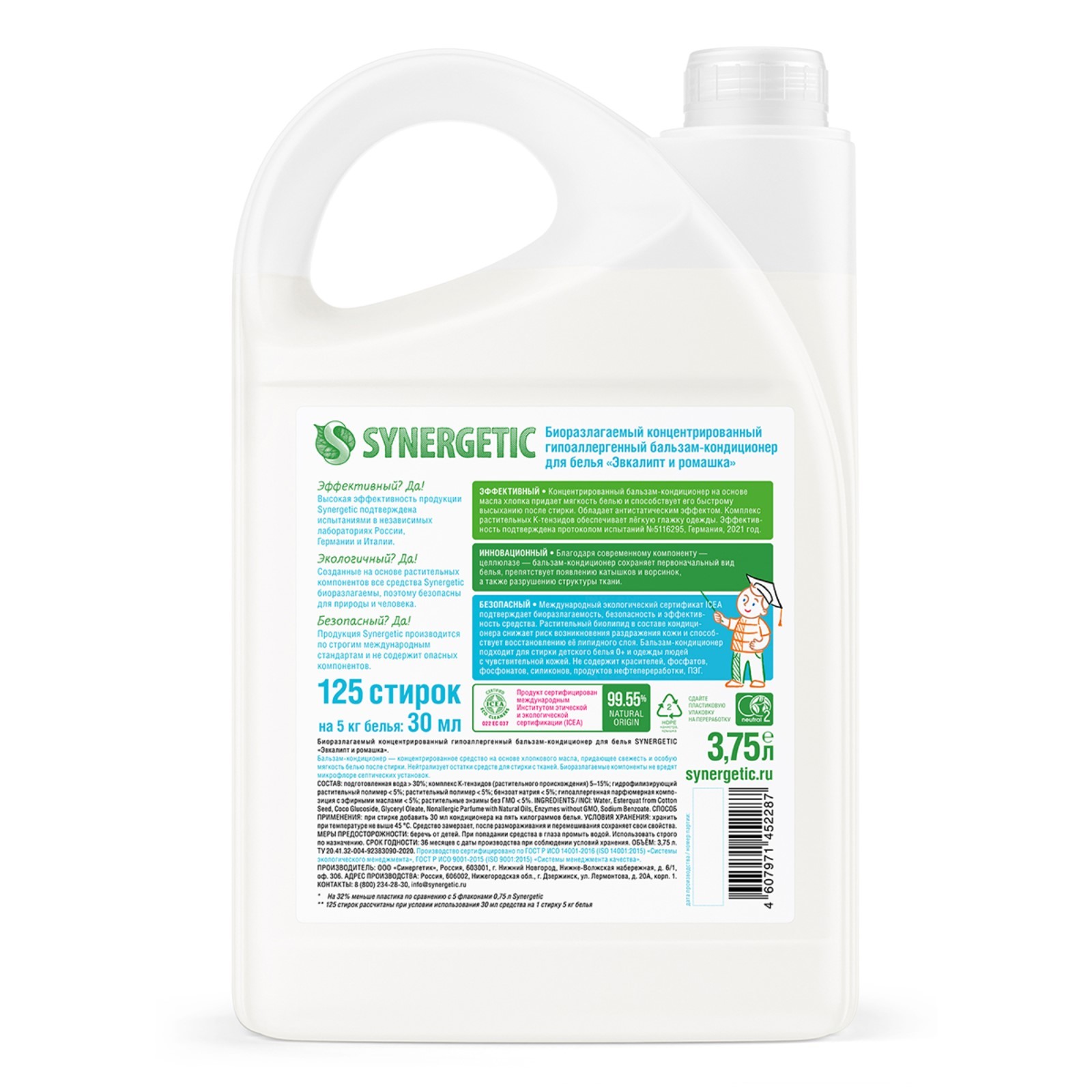 Бальзам-кондиционер для белья Synergetic «эвкалипт и ромашка», концентрат, 3,75л