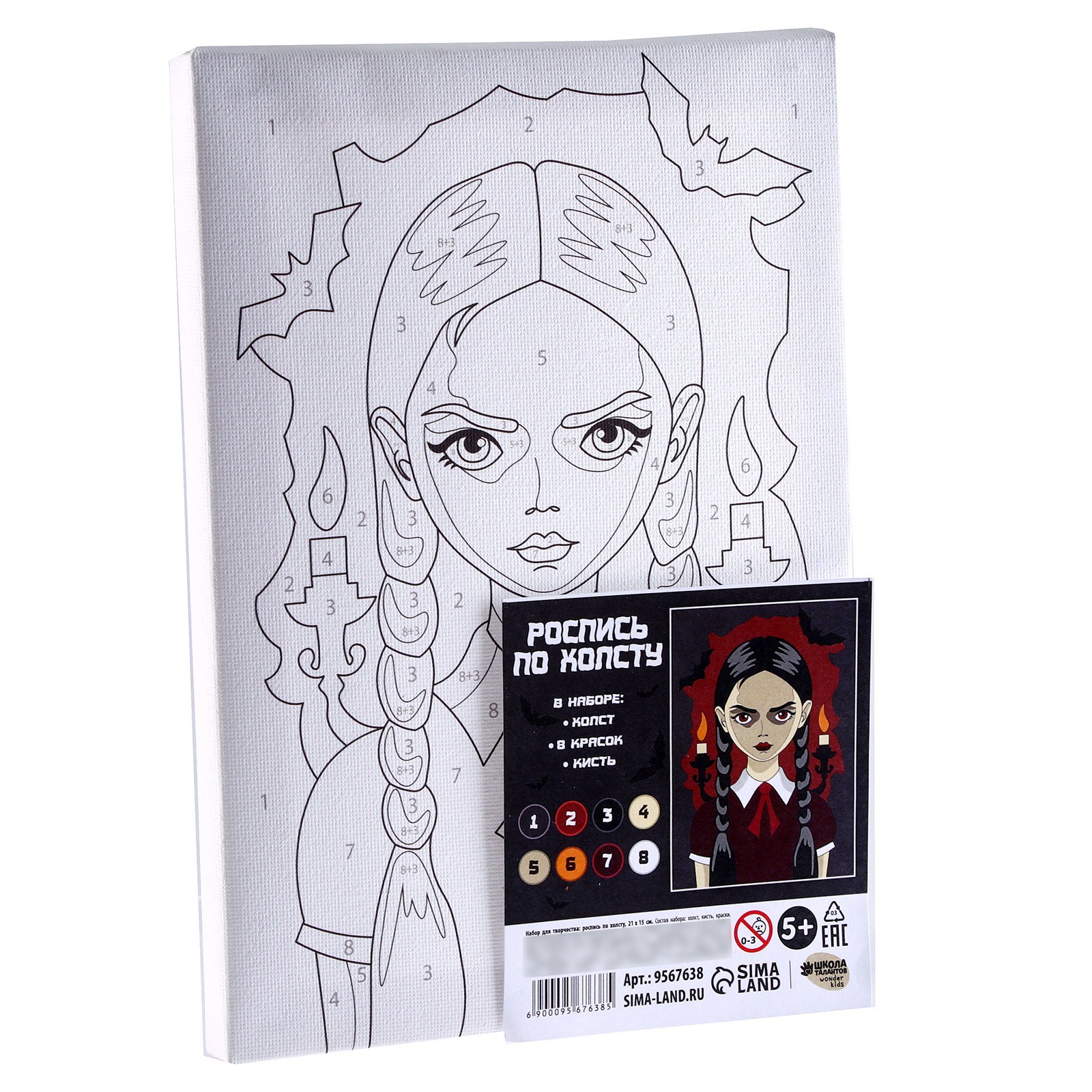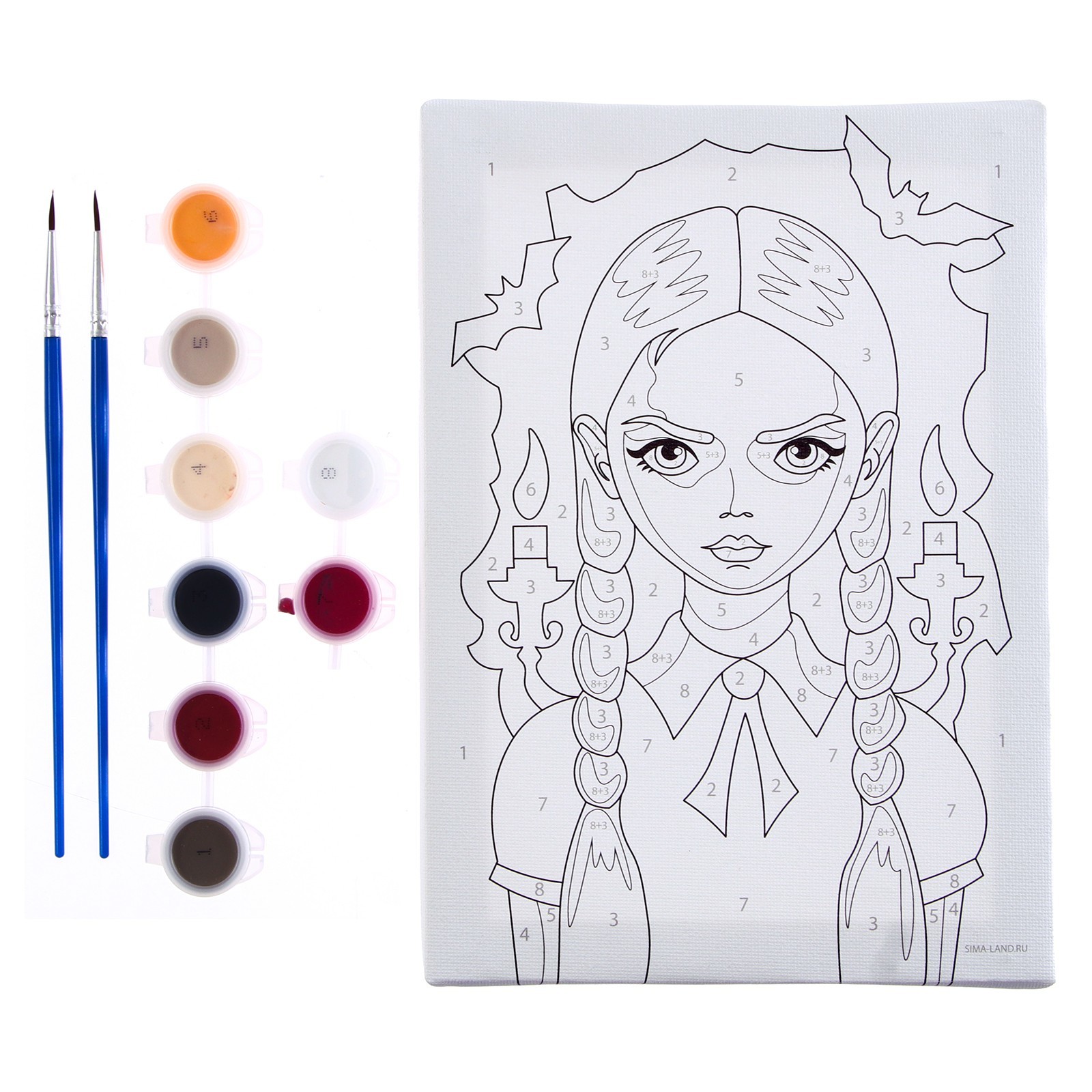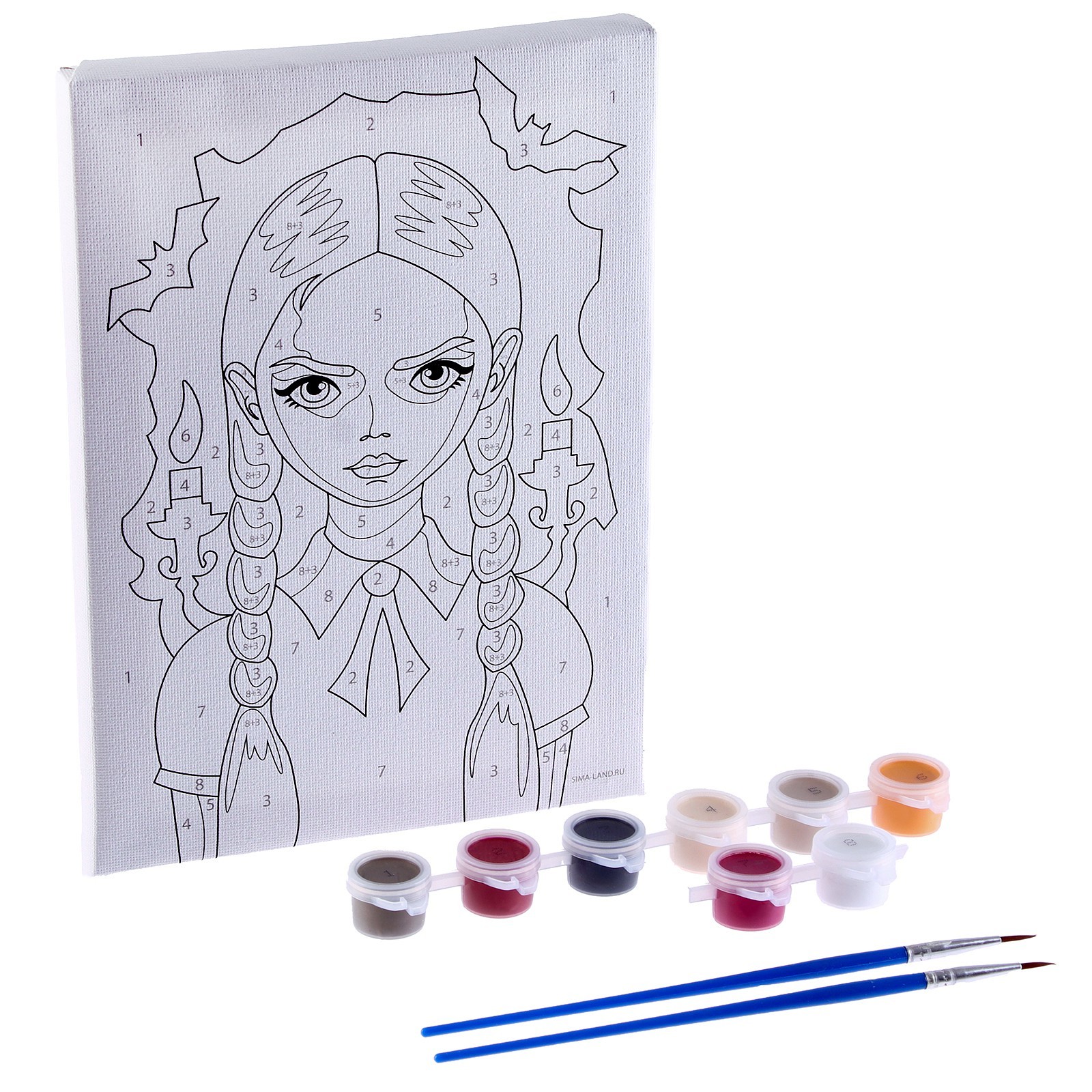 Картина по номерам для детей «девочка со свечками», 21 15 см. Подарите маленькому художнику картину по номерам, и через пару мгновений он создаст шедевр! Как раскрасить картину по номерам Рисунок представляет собой знакомую ребёнку раскраску.В каждом секторе рисунка есть цифра, которая обозначает цвет краски.Можете пользоваться подсказкой для раскрашивания, а можете пофантазировать и смешать краски по-своему.Готовая картина украсит детскую комнату или станет оригинальным подарком близкому человеку. Количество цветов:8|Для кого:Унисекс|Размер, см:21 х 15|Возраст:От 7 лет|Тематика:Детская|Тематика:Хеллоуин|Тематика:Фильмы|Ориентация изображения:Вертикально|Тип холста:Холст на подрамнике|Вид:Холст под роспись|Темпер. ограничение НЕ НИЖЕ :-30|Уровень сложности:Средний|Изображение:Мультфильмы|Изображение:Фильмы|Комплектация набора:С кисточками|Комплектация набора:С красками|Страна:Россия  развернуть описание ▼