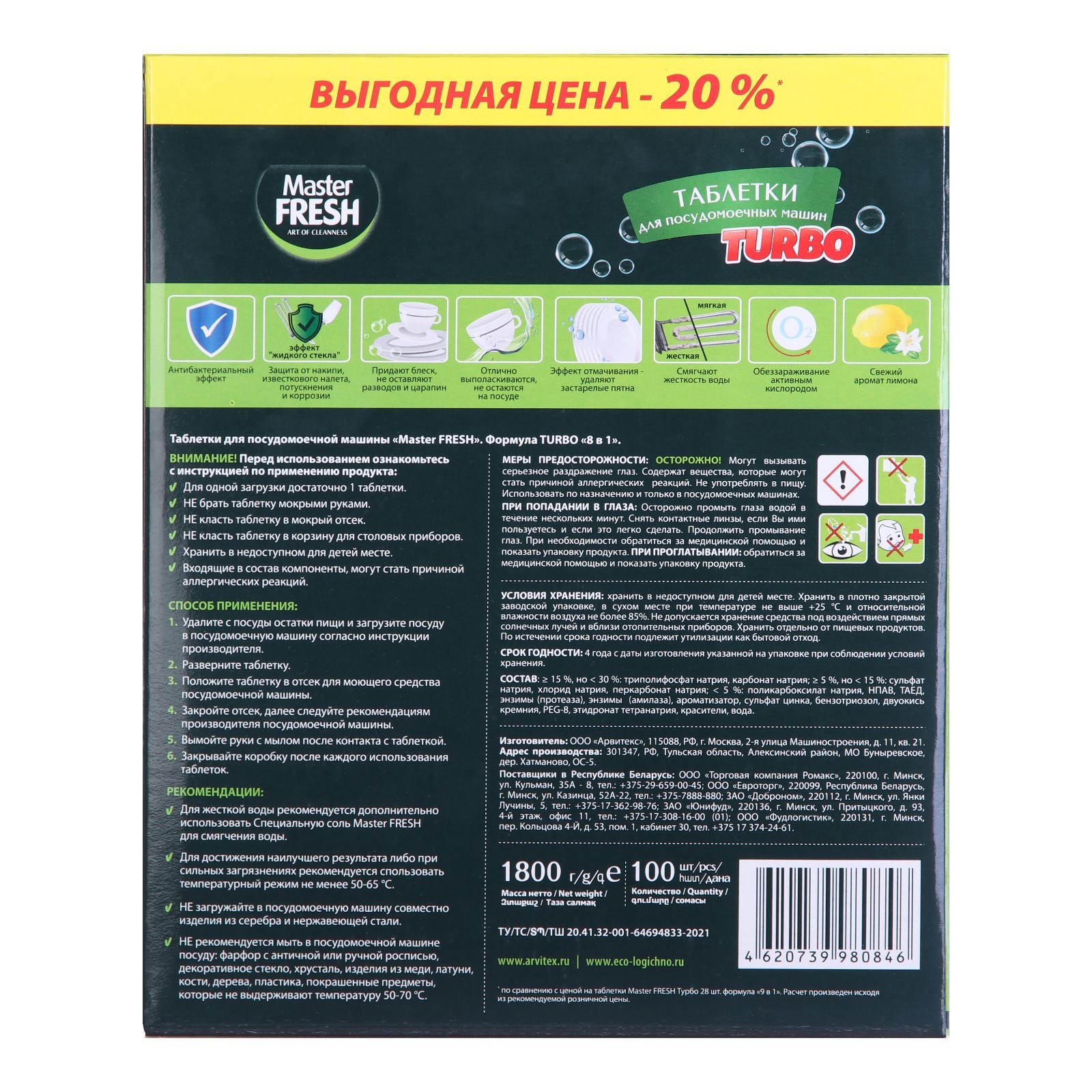 Таблетки для посудомоечных машин Master Fresh Turbo 8 в 1, 100 шт.