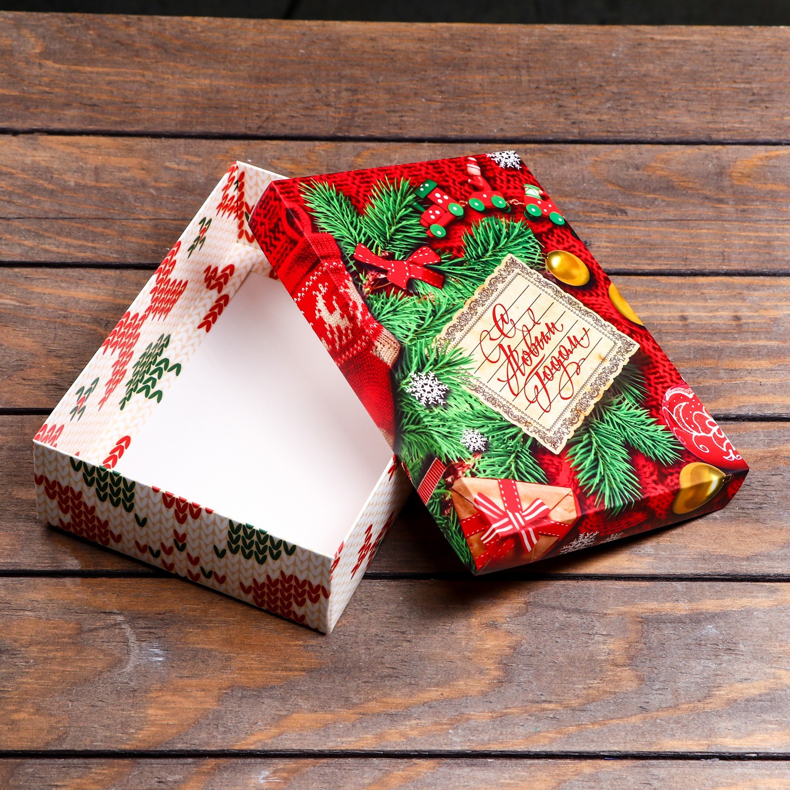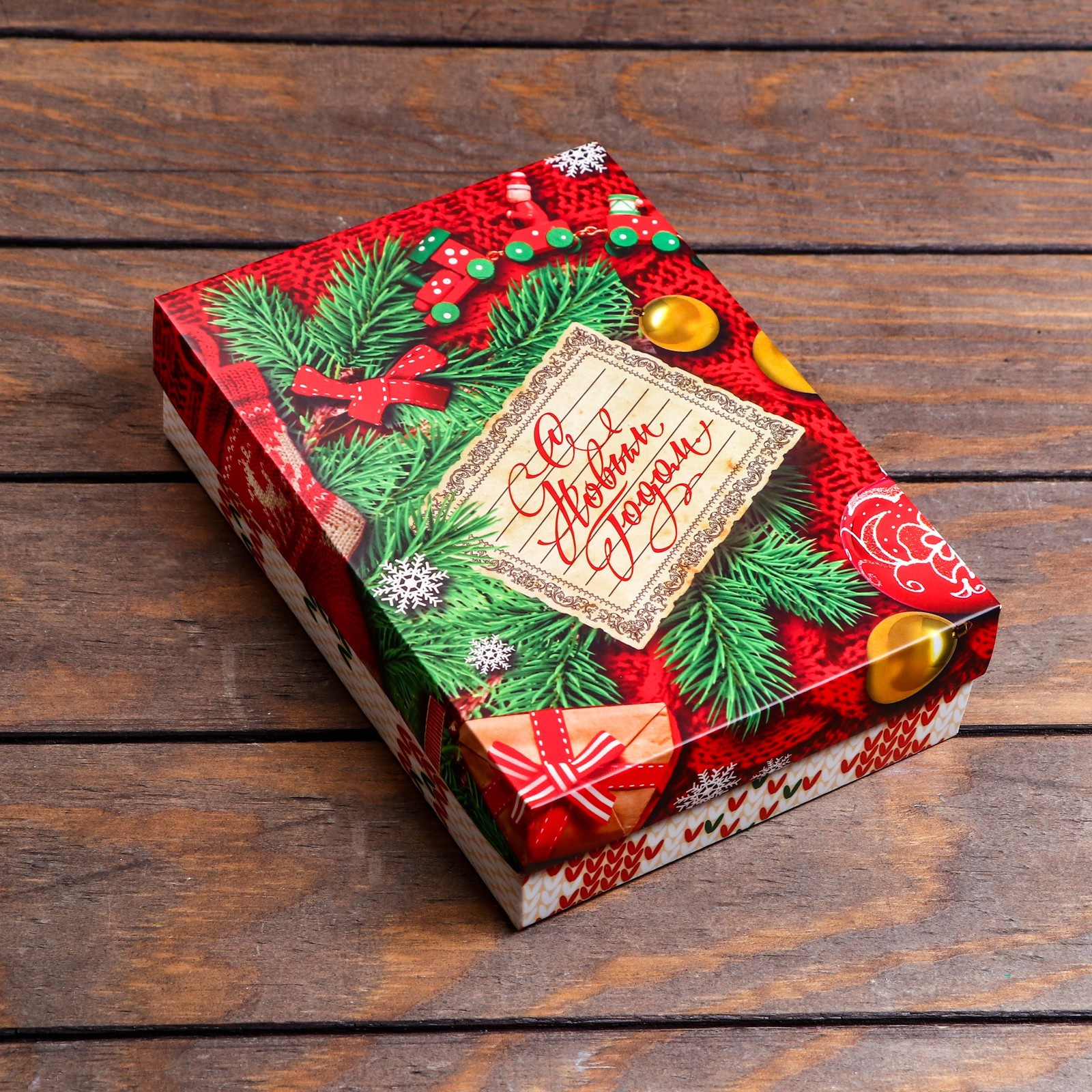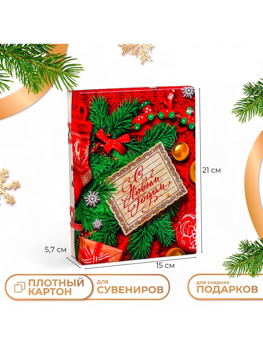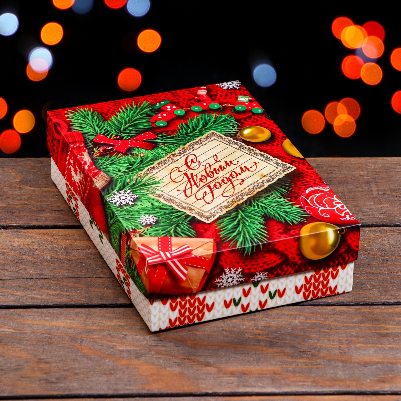 Коробка подарочная новогодняя складная «с новым годом», 21 15 5.5 см. Любой подарок начинается с упаковки. Что может быть трогательнее и волшебнее , чем ритуал разворачивания полученного презента. И именно оригинальная , со вкусом выбранная упаковка выделит ваш подарок из массы других. Высокое качество материала, универсальный дизайн и вместительный объем коробки. Преимущества: яркий дизайн;качественный картон;удобно при транспортировке.Цвет:Красный|Форма:Прямоугольная|Плотность, г/м :300|Длина, см:21|Ширина, см:15|Высота, см:5.7|Тематика:Рождественская|Тематика:Новогодняя|Символ года:Нет|Тематика праздника:Рождество|Тематика праздника:Новый год|Материал:Картон|Вид еды:Для пирожных|Вид еды:Для десертов|Вид еды:Универсальный|Вид:Жёсткие (крышка+дно)|Вид:Складные коробки|Размер:Средний (18-24 см)|Окошко:Нет|Крышка-дно:Да|Страна:Китай  развернуть описание ▼