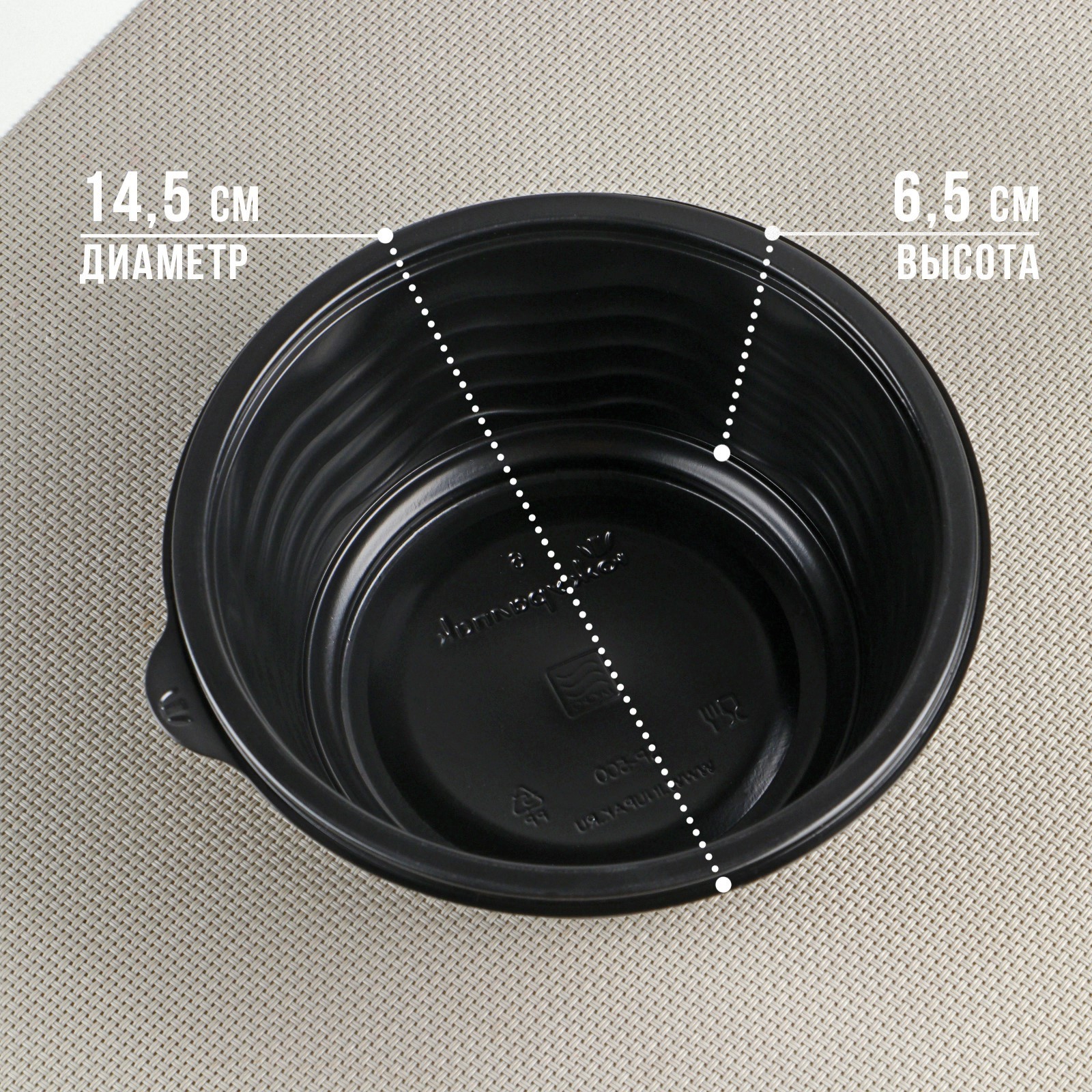 Контейнер пластиковый одноразовый «супница», sp-500, круглый, черный, 600 шт/уп.