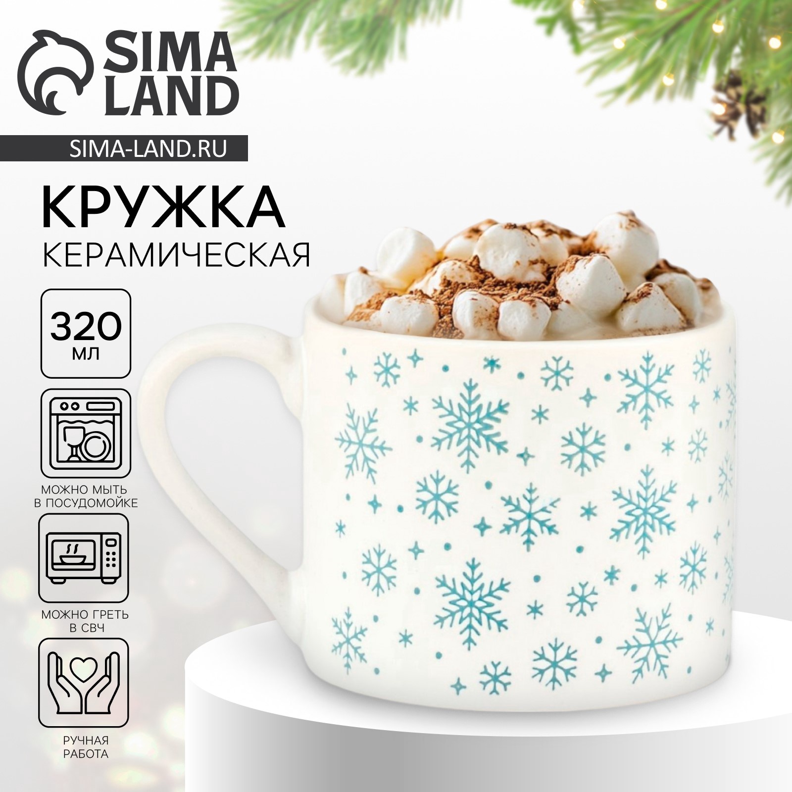 Кружка керамическая новогодняя «снежинки», 320 мл, ручная работа