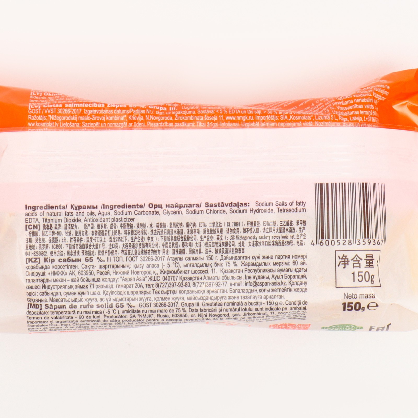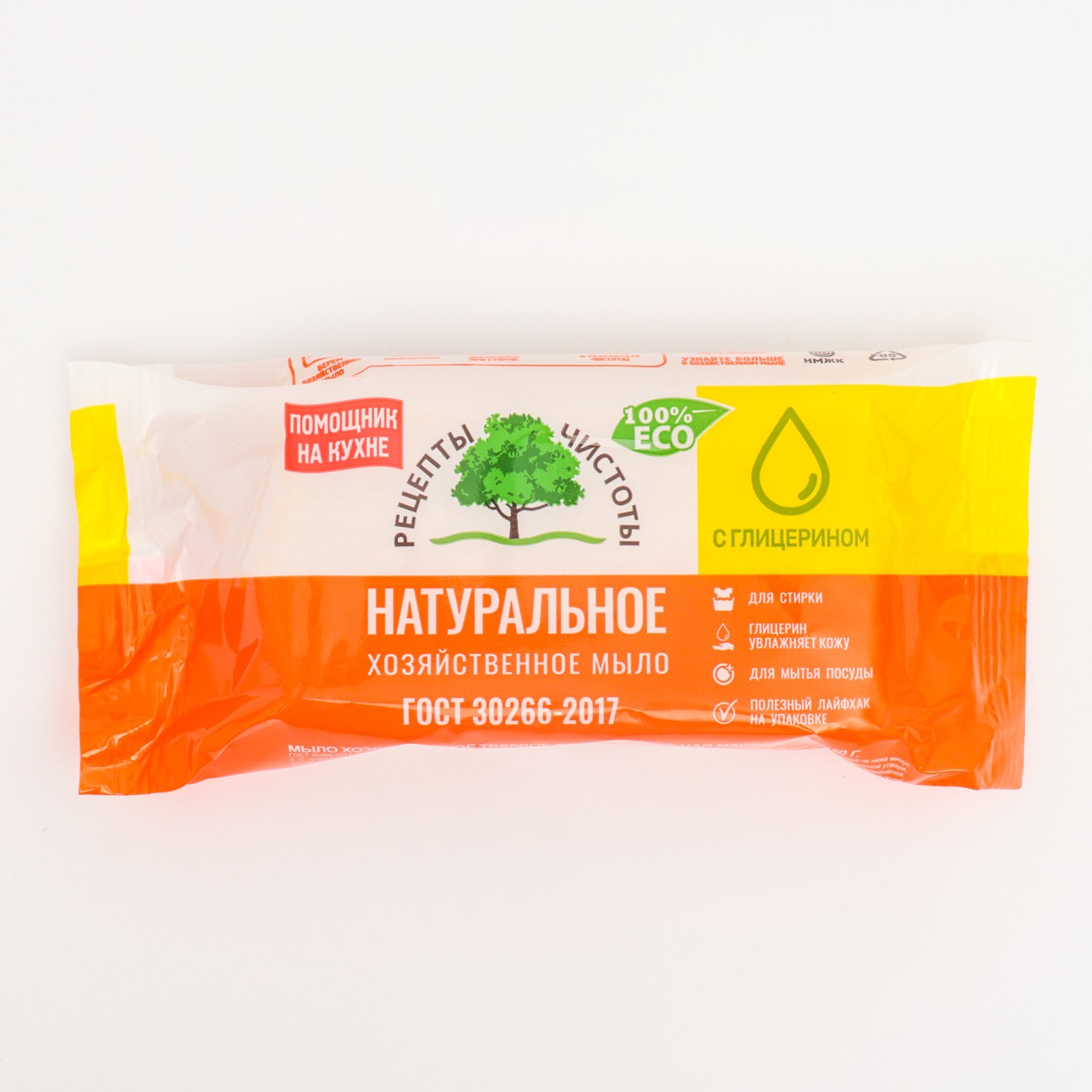 Мыло хозяйственное твердое 65% рецепты чистоты, с глицерином, 150 г. Твердое хозяйственное мыло 65% изготовлено в пленочной упаковке из натурального жирового сырья по традиционной рецептуре и в соответствии с требованиями ГОСТ. Мыло не содержит отдушек и красителей, обладает высокой отстирывающей способностью даже в холодной жесткой воде и полностью выполаскивается из тканей. Состав: Натриевые соли жирных кислот натуральных жиров и масел, вода, кальцинированная сода, натр едкий, хлорид натрия, комплексообразователь тетранатрий ЭДТА, диоксид титана, антиоксидант-пластификатор. Вес, г/Объём, мл: 150 Вес, г: 150 Аромат: Без аромата Тип: Твёрдое Вид мыла: Хозяйственное Температурное ограничение: Нет Товар 18+: Нет  развернуть описание ▼