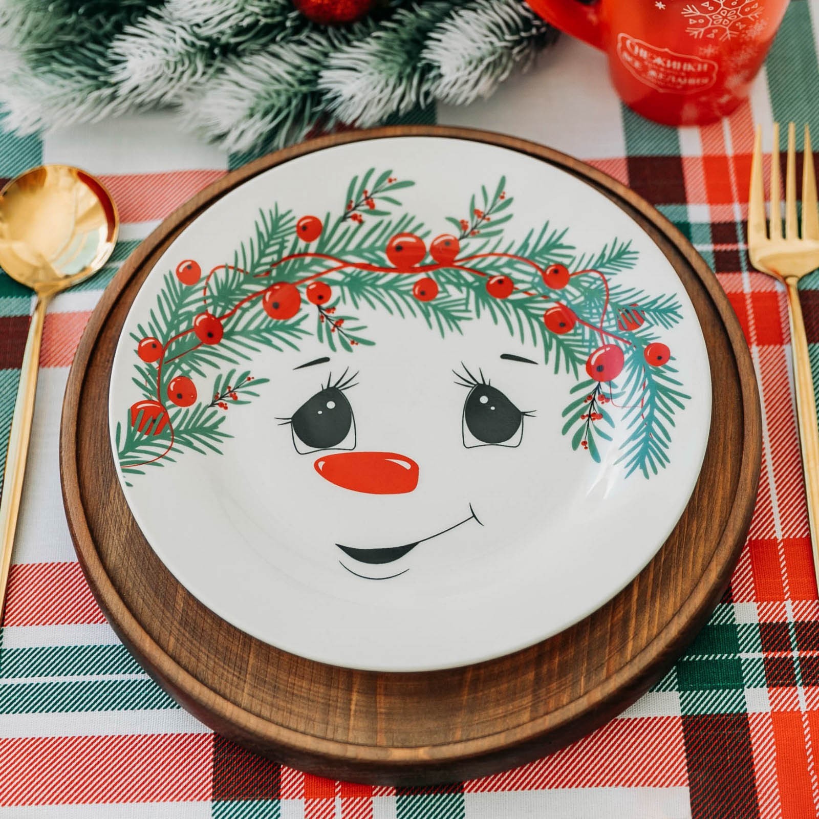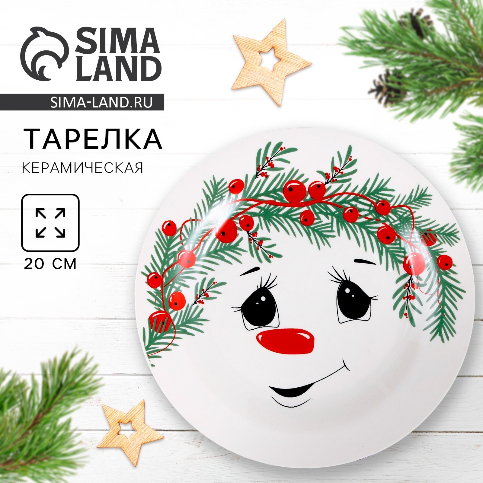 Новый год! тарелка новогодняя керамическая «снеговик снежок», 20 см