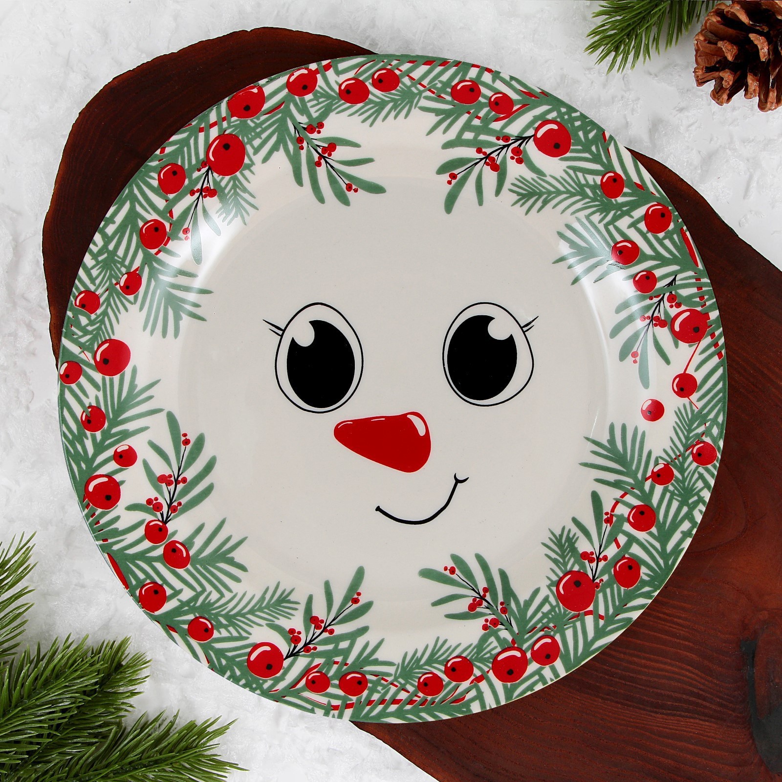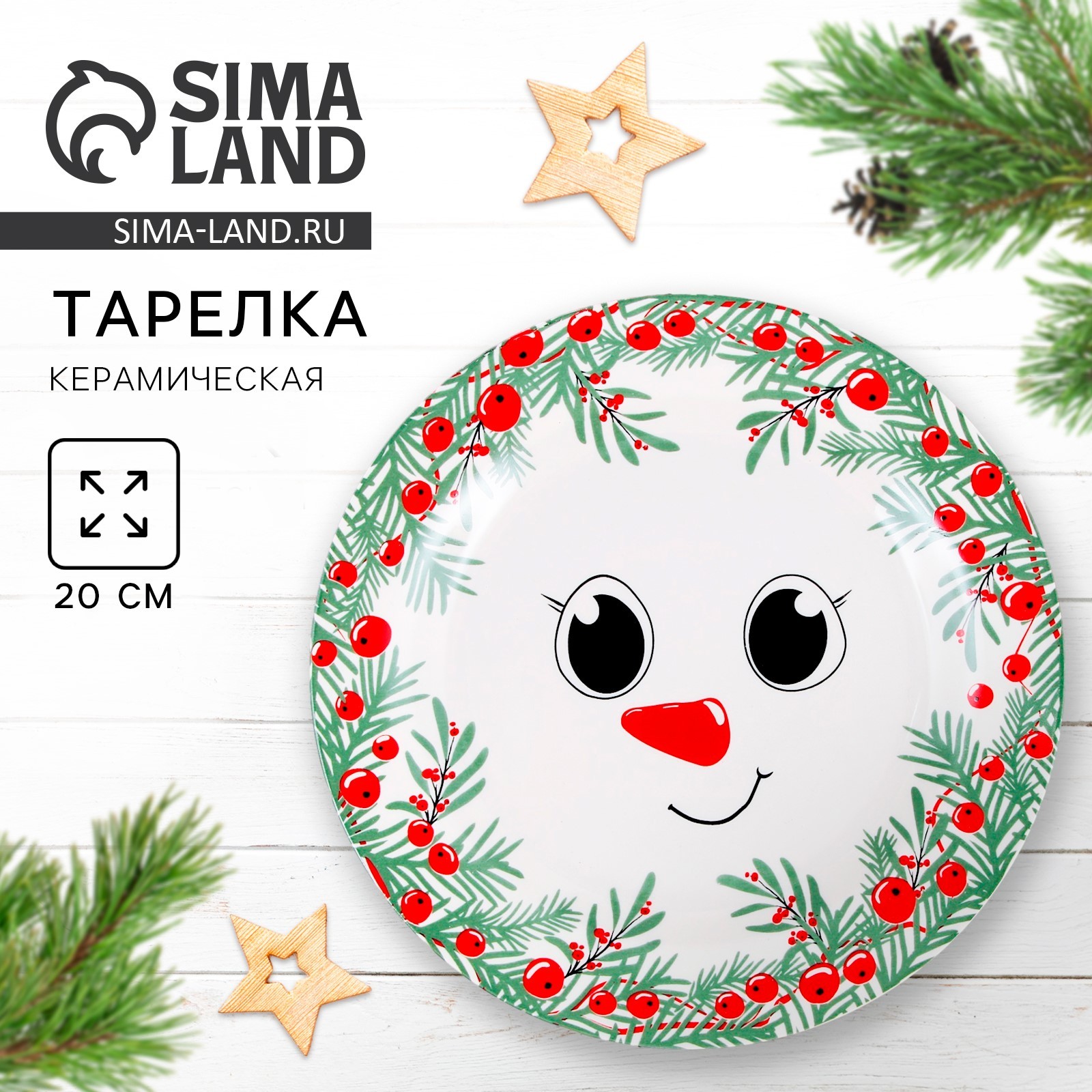 Новый год! тарелка новогодняя керамическая «снеговик крош», 20 см