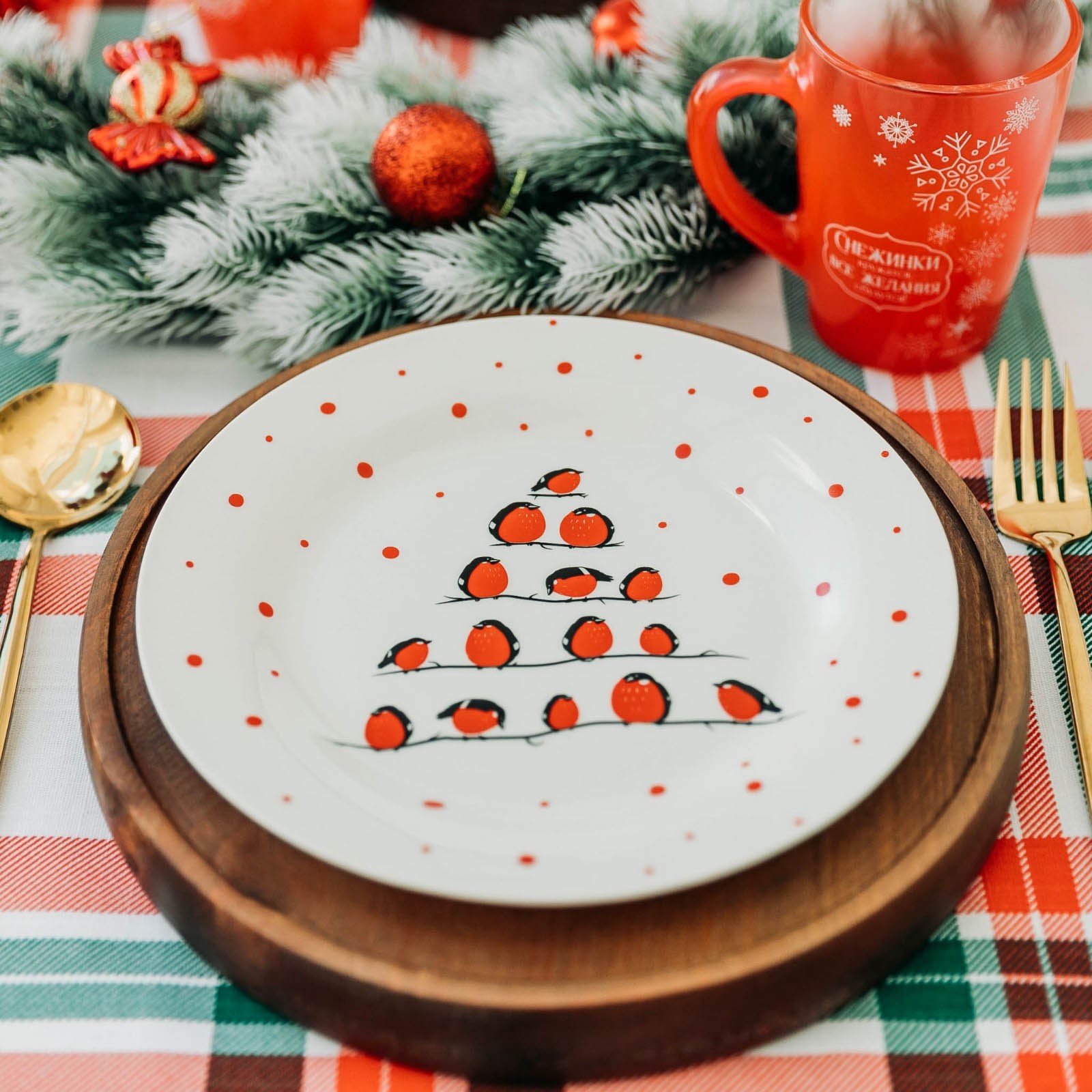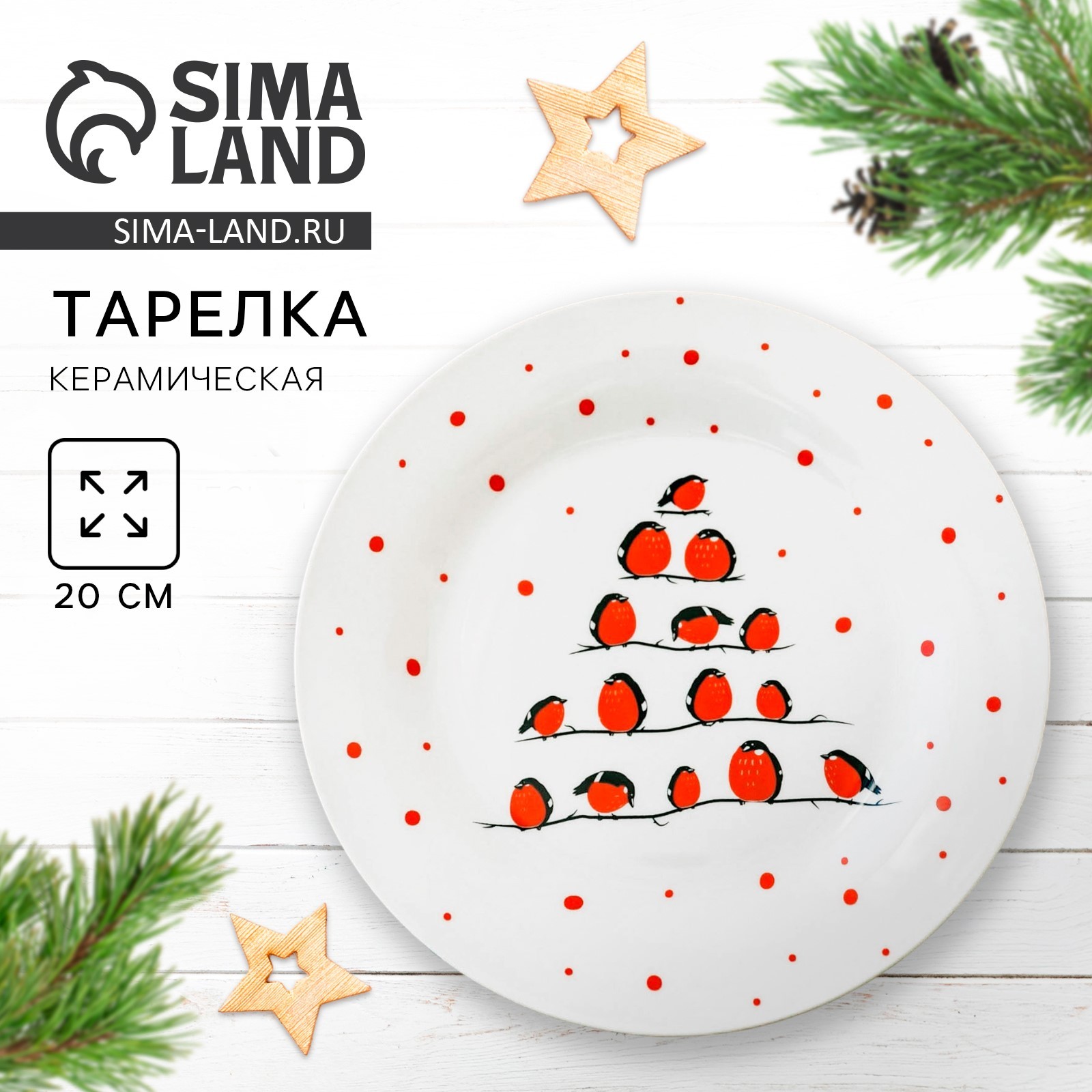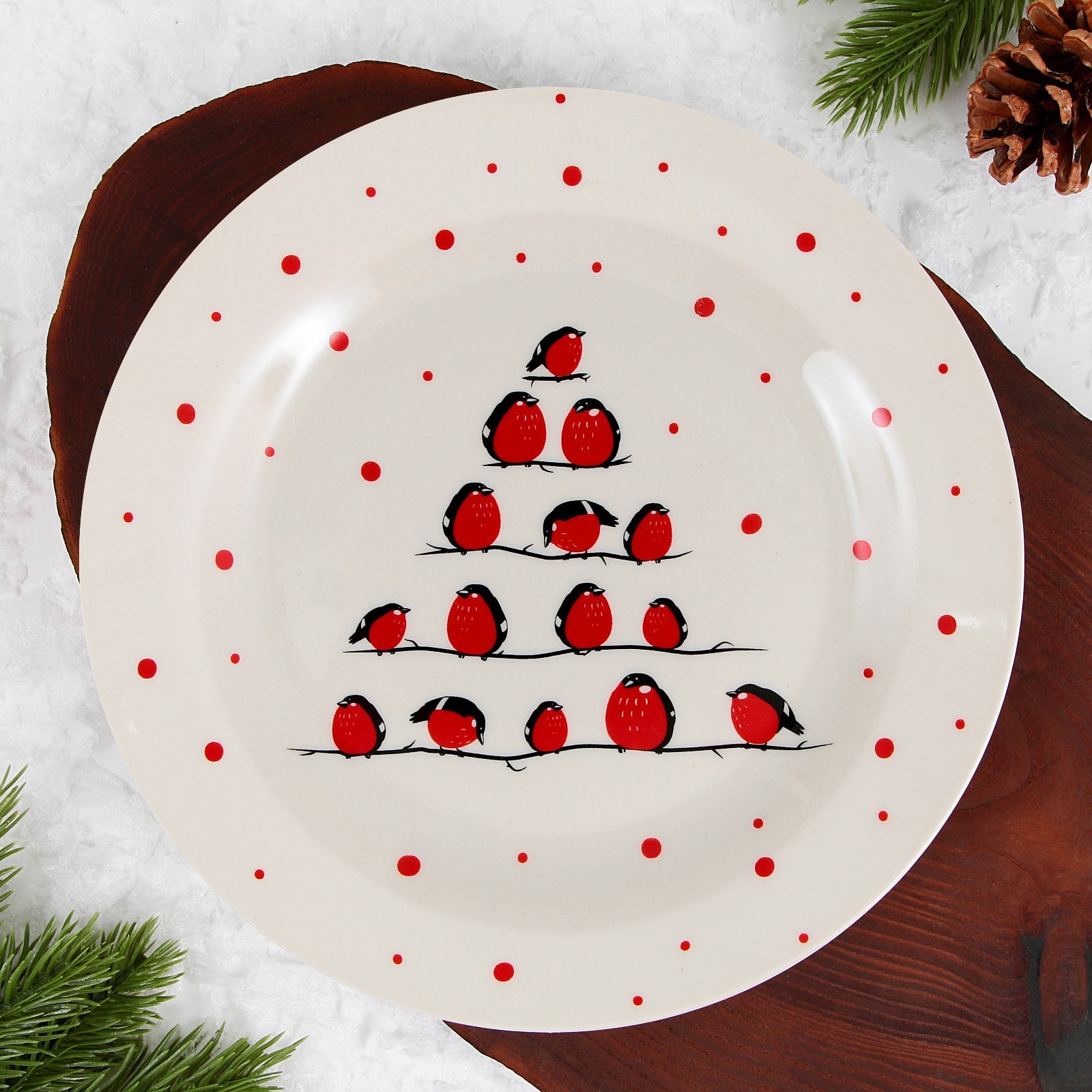 Новый год! тарелка новогодняя керамическая «снегири», 20 см