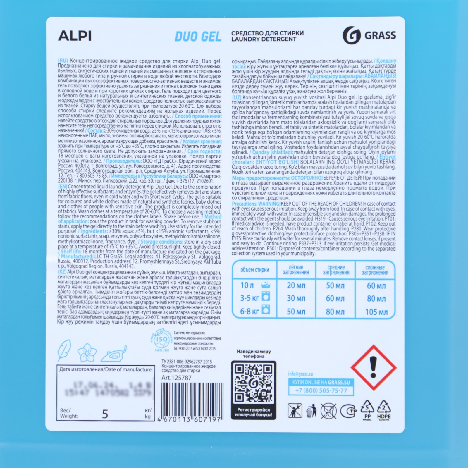 Гель для стирки Alpi Duo Gel универсальный, концентрат, 5 л