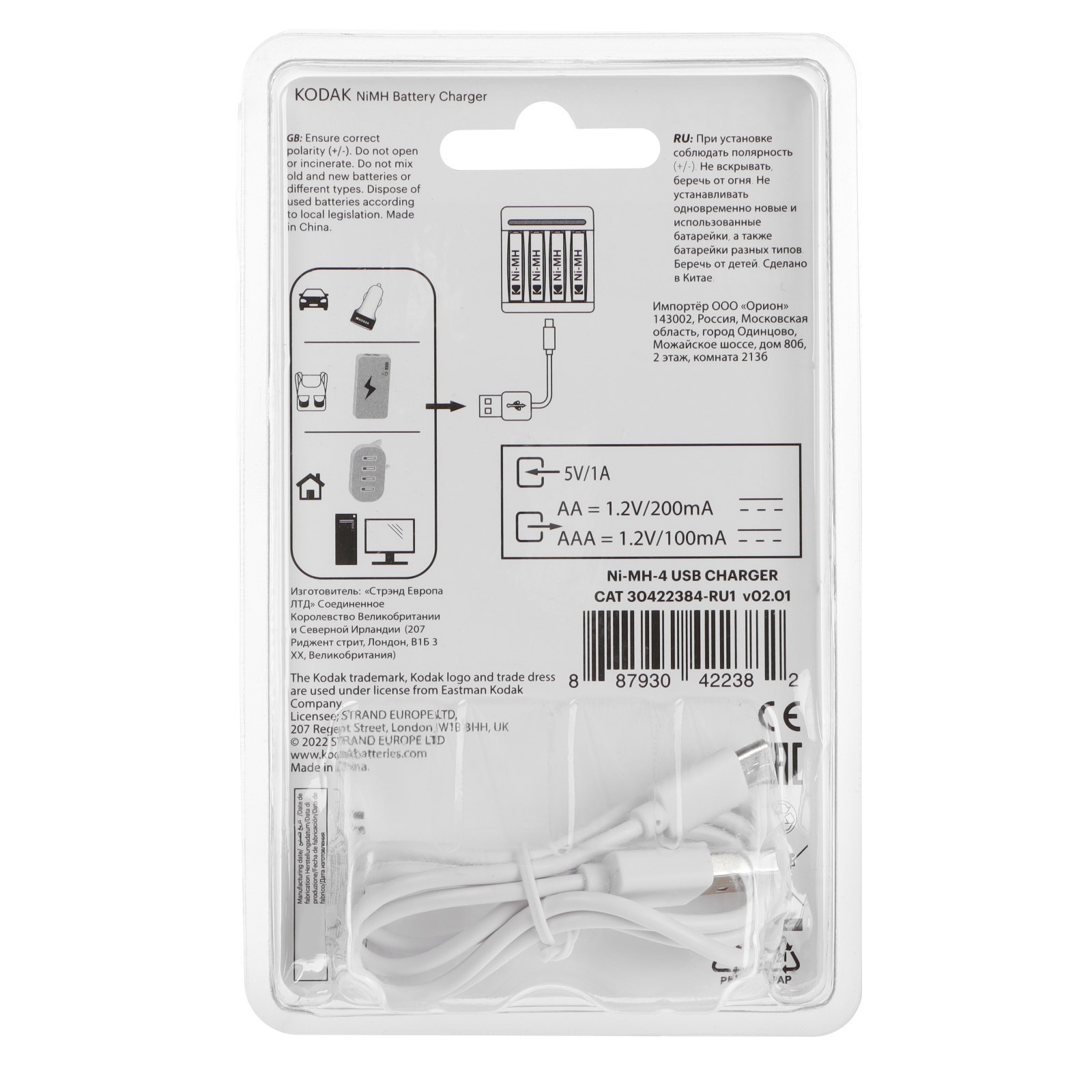 Зарядное устройство Kodak C8002b, для аккумуляторов 4хaa/aaa, Usb, белое