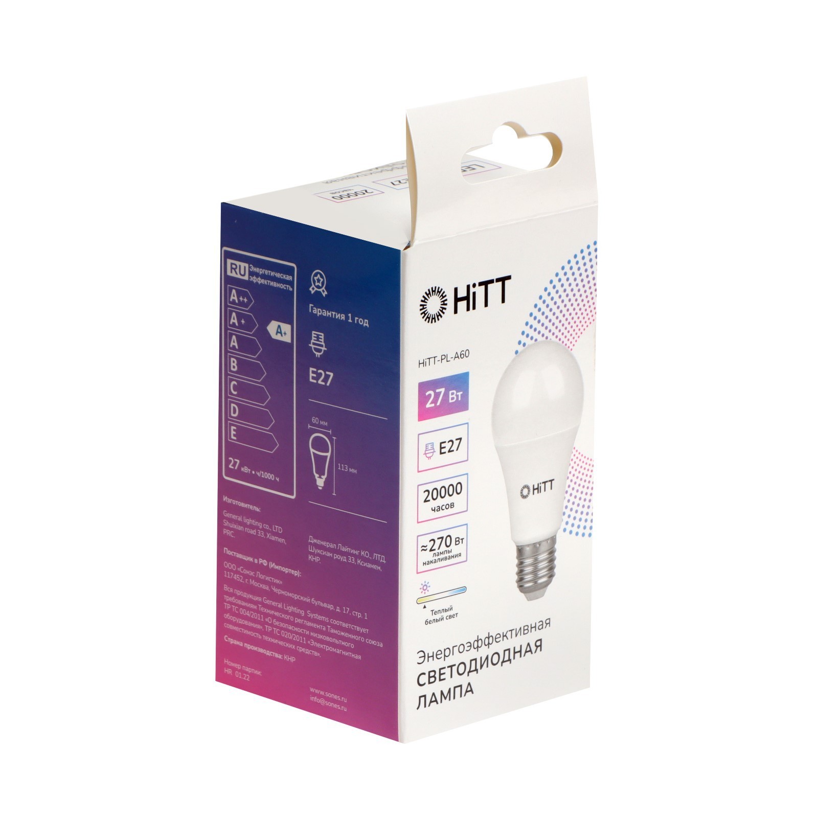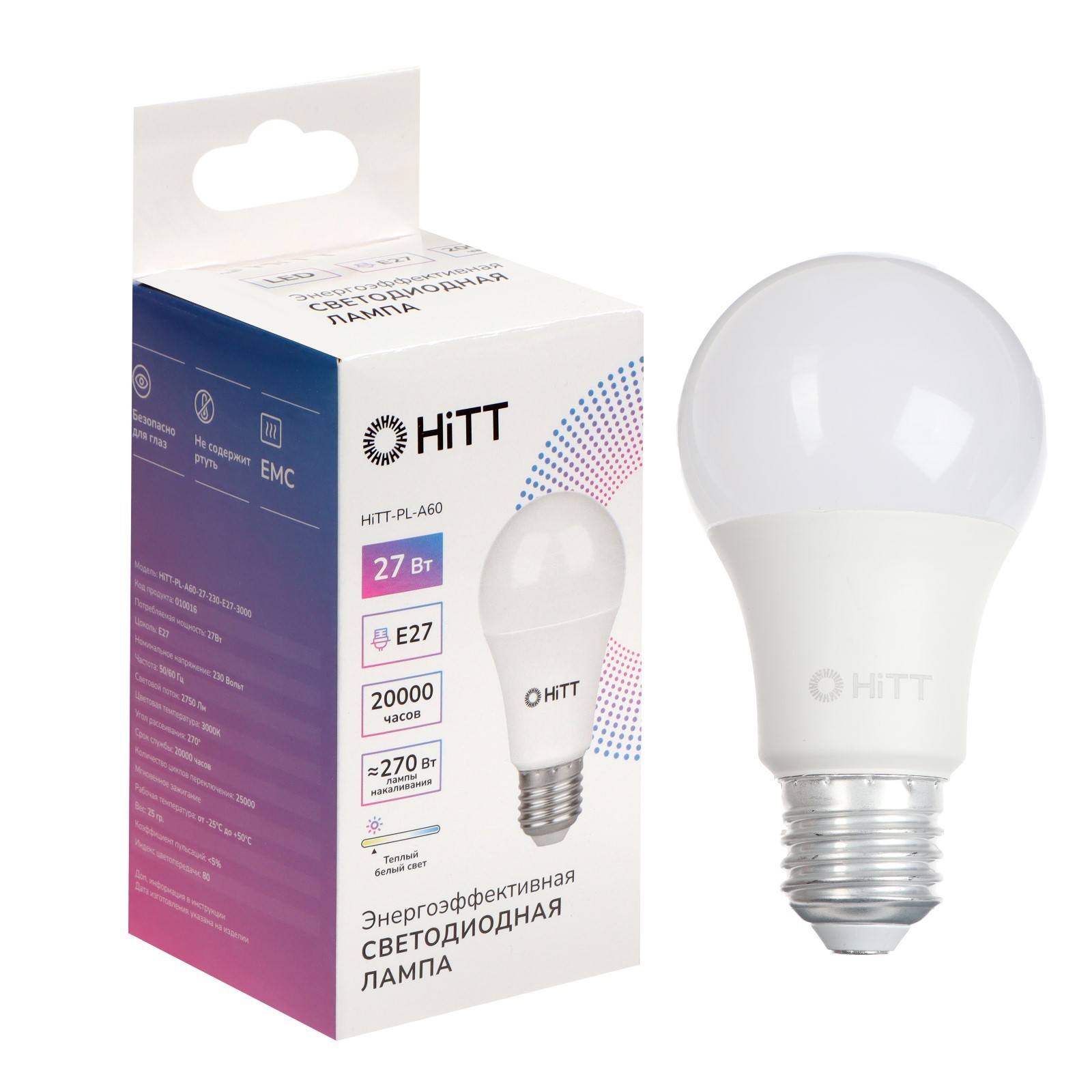 Лампа Hitt-pl, A60, 27 вт, 230 в, E27, 3000 к
