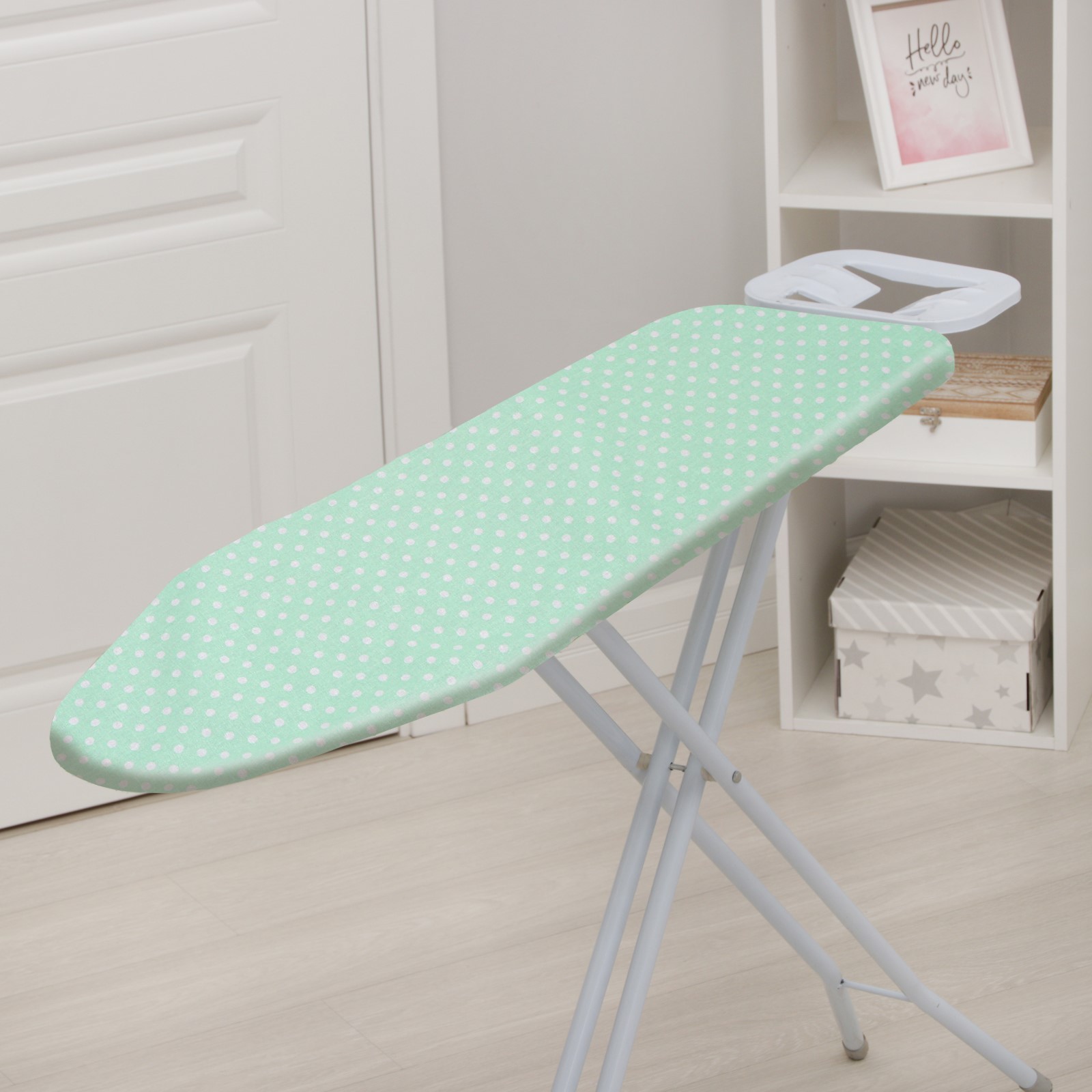 Чехол для гладильной доски, 130x49 см, хлопок, микс. Чехол для гладильной доски – не просто аксессуар. Он заботится о том, чтобы ваши вещи были качественно проглажены, без некрасивых заломов. Преимущества:Высокая стойкость к внешним факторам, таким как высокая температура и сильная влажность, к примеру, при отпаривании постельного белья;Отсутствие «эффекта прилипания» одежды;Теплоотражающий эффект, ускоряющий процесс: можно быстро выполнить работу и приступить к другим домашним делам. Цвет: Зелёный Цвет: МИКС Ширина, см: 49 parts count: 0 Длина гладильной доски, см: 130 Вид: Чехол для одежды Температурное ограничение: Нет Подложка: Без подложки Материал чехла: Хлопок  развернуть описание ▼