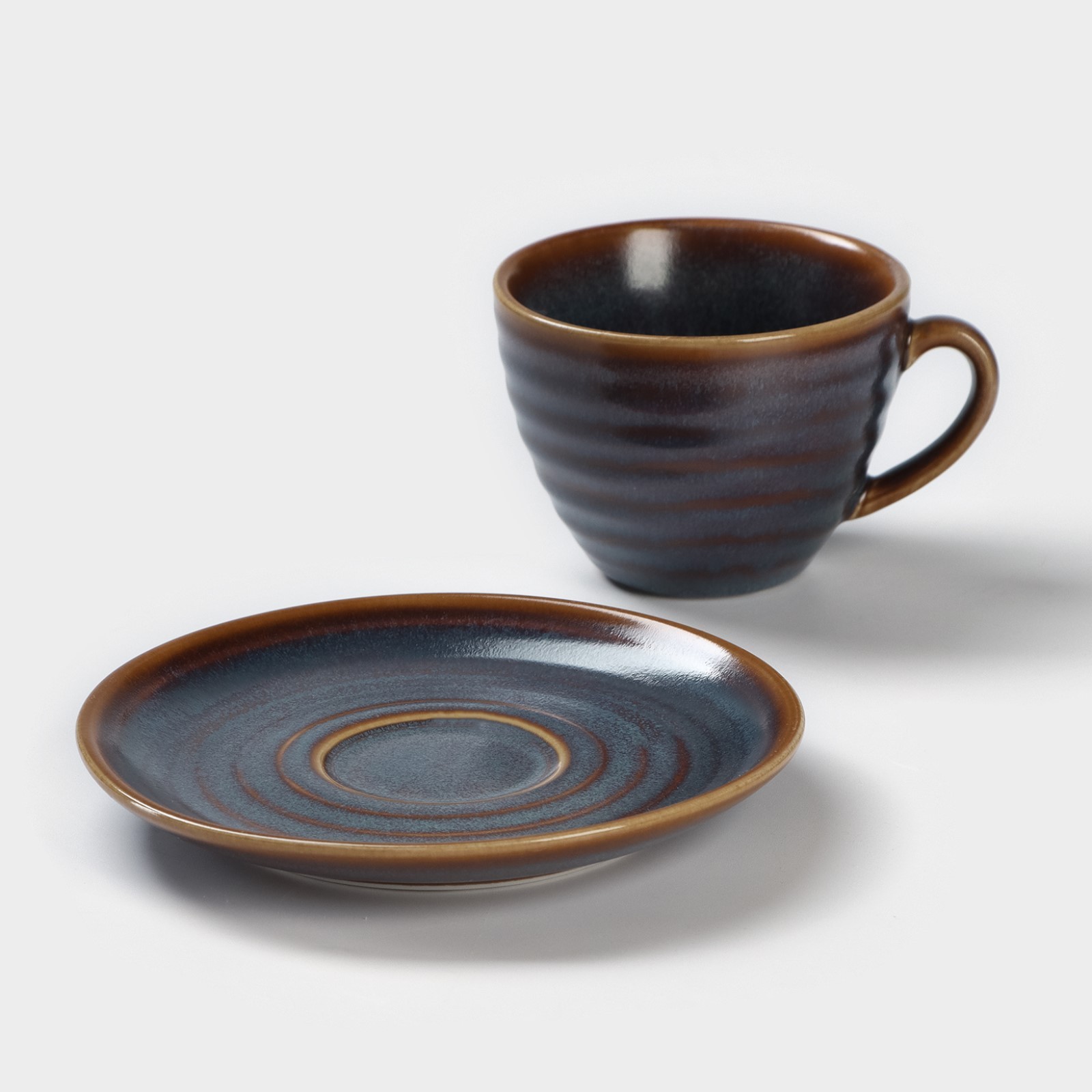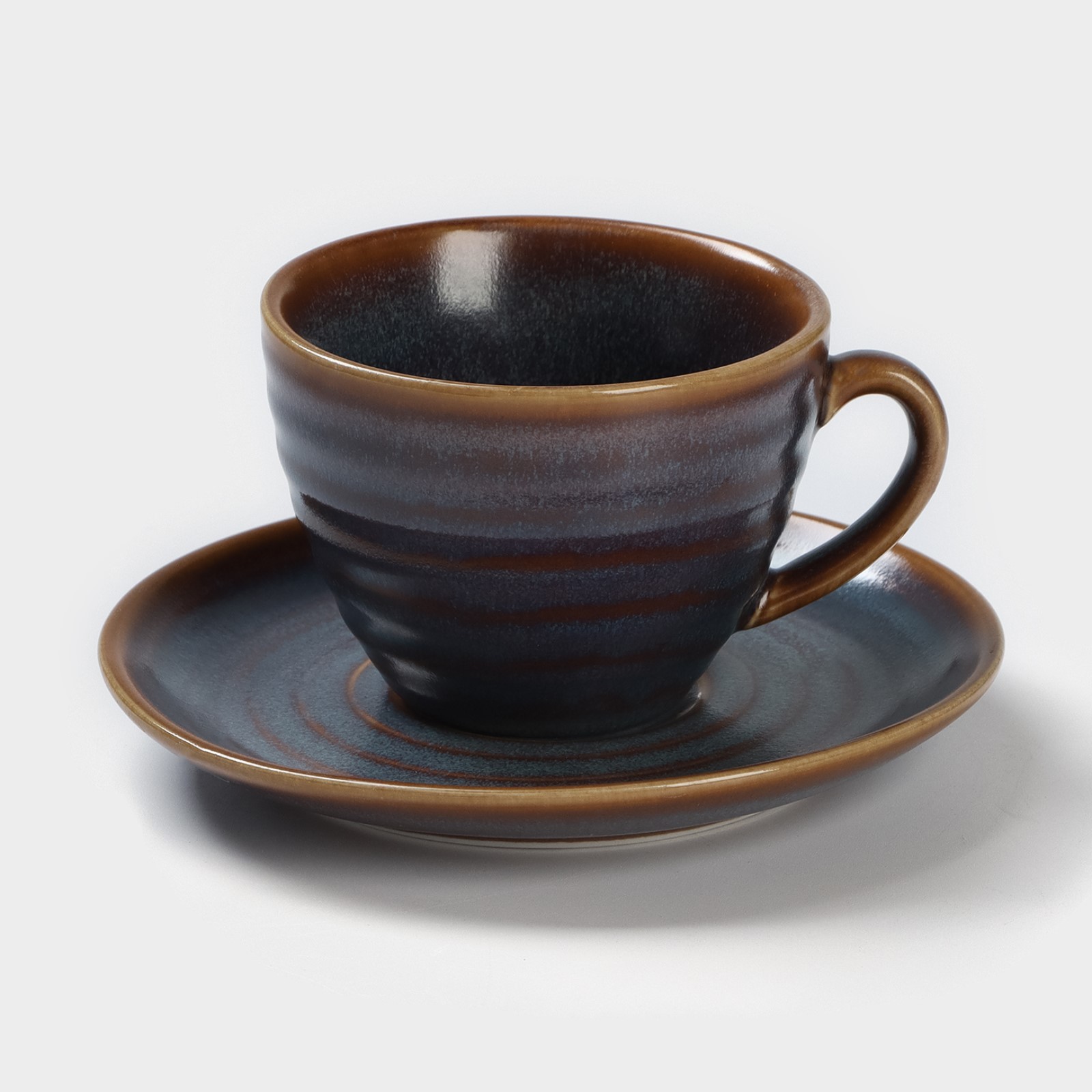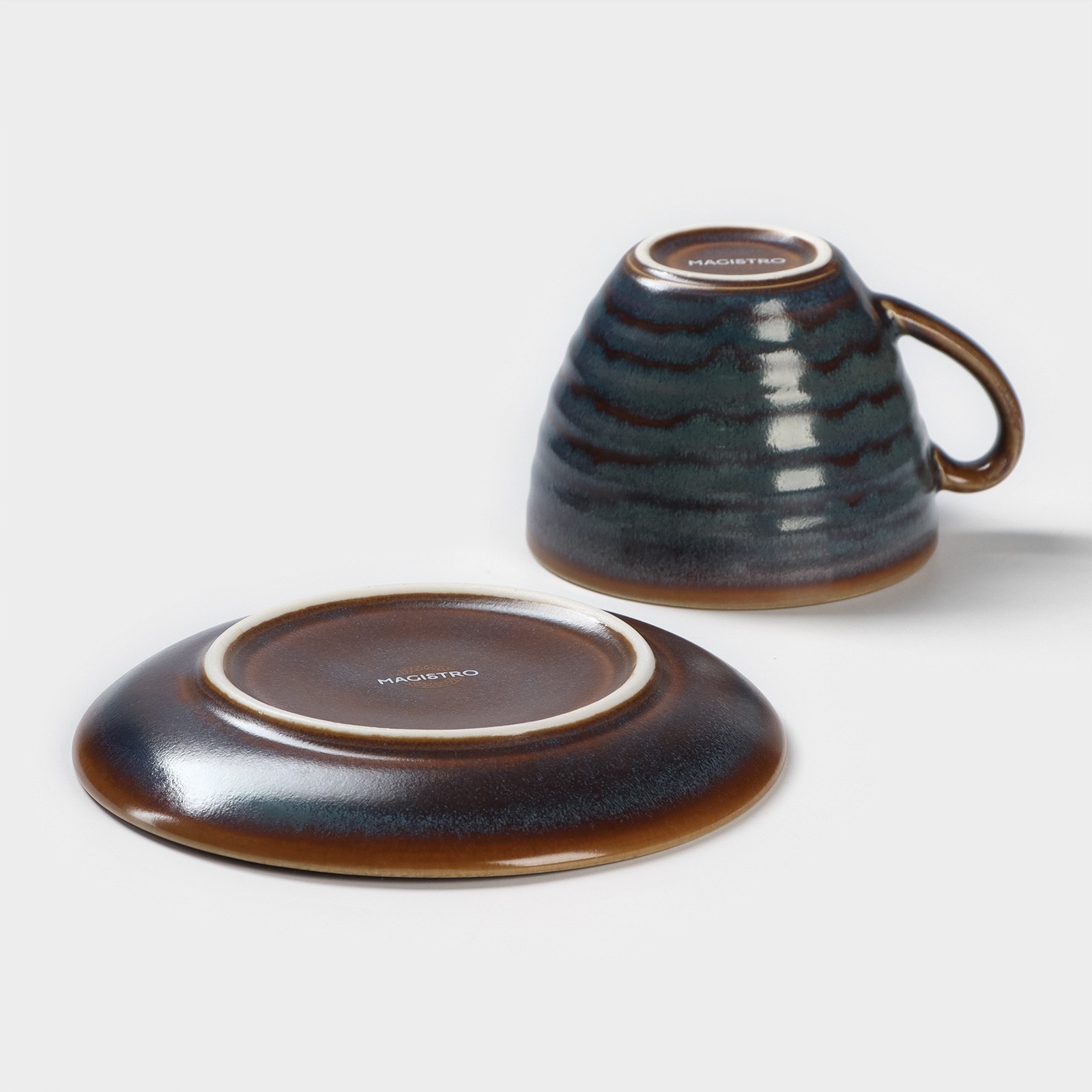 Чайная пара фарфоровая Magistro Garland, 2 предмета: чашка 200 мл, блюдце D=14,2 см, цвет синий