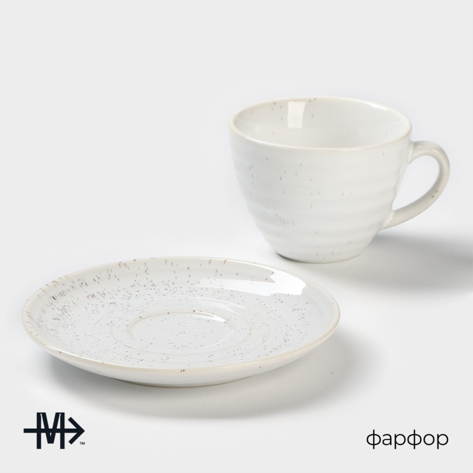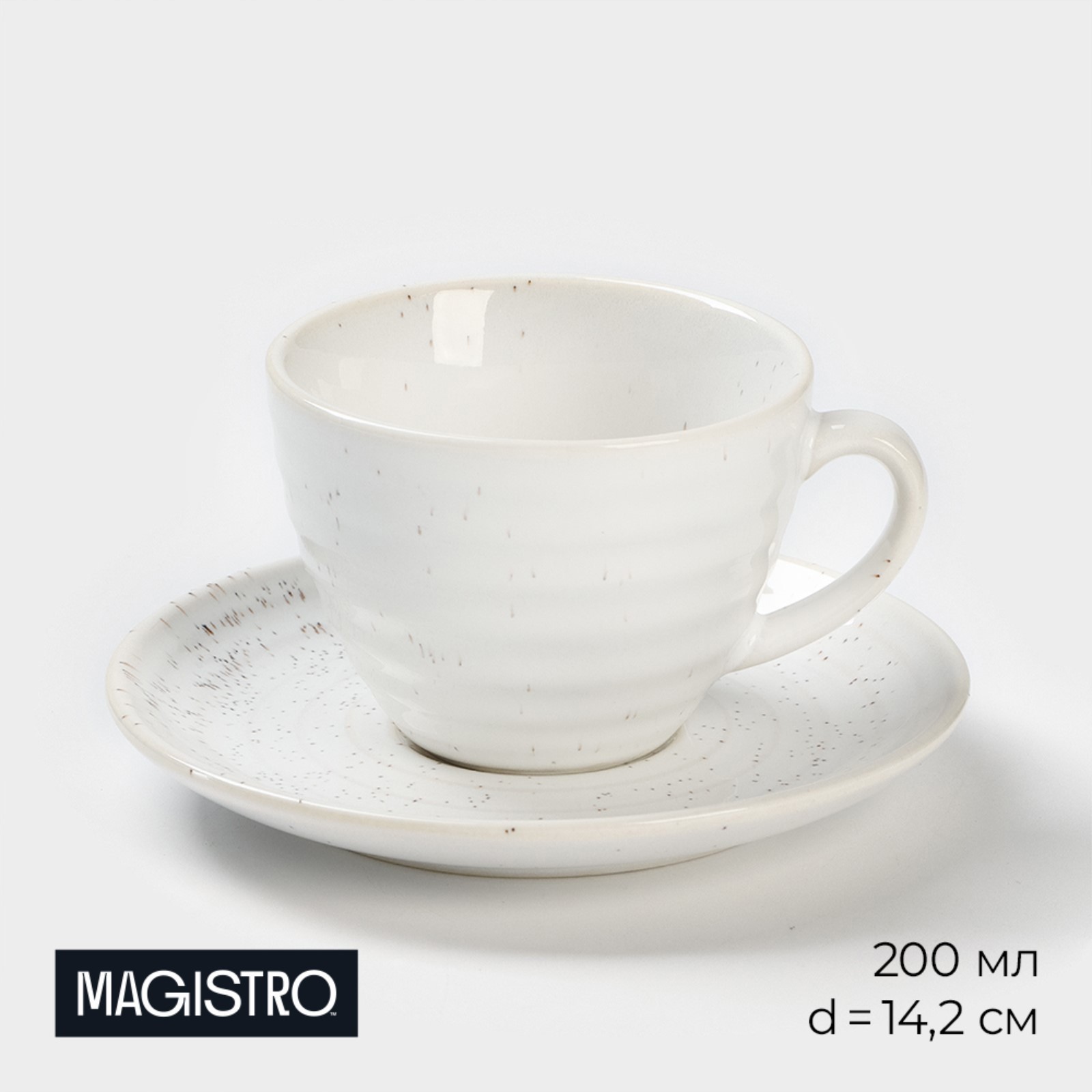 Чайная пара фарфоровая Magistro Urban, 2 предмета: чашка 200 мл, блюдце D=14,2 см, цвет белый