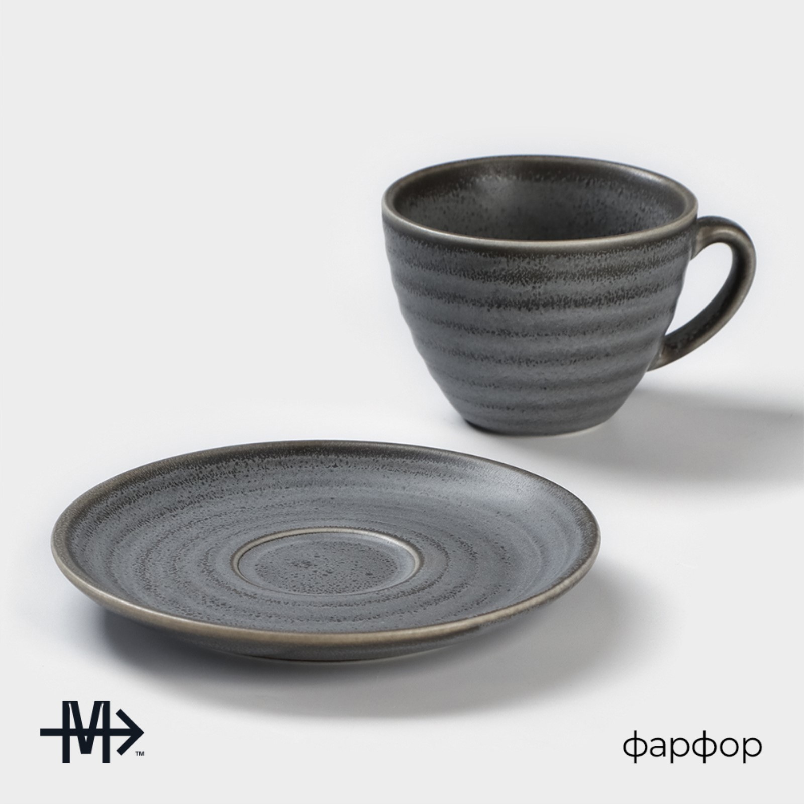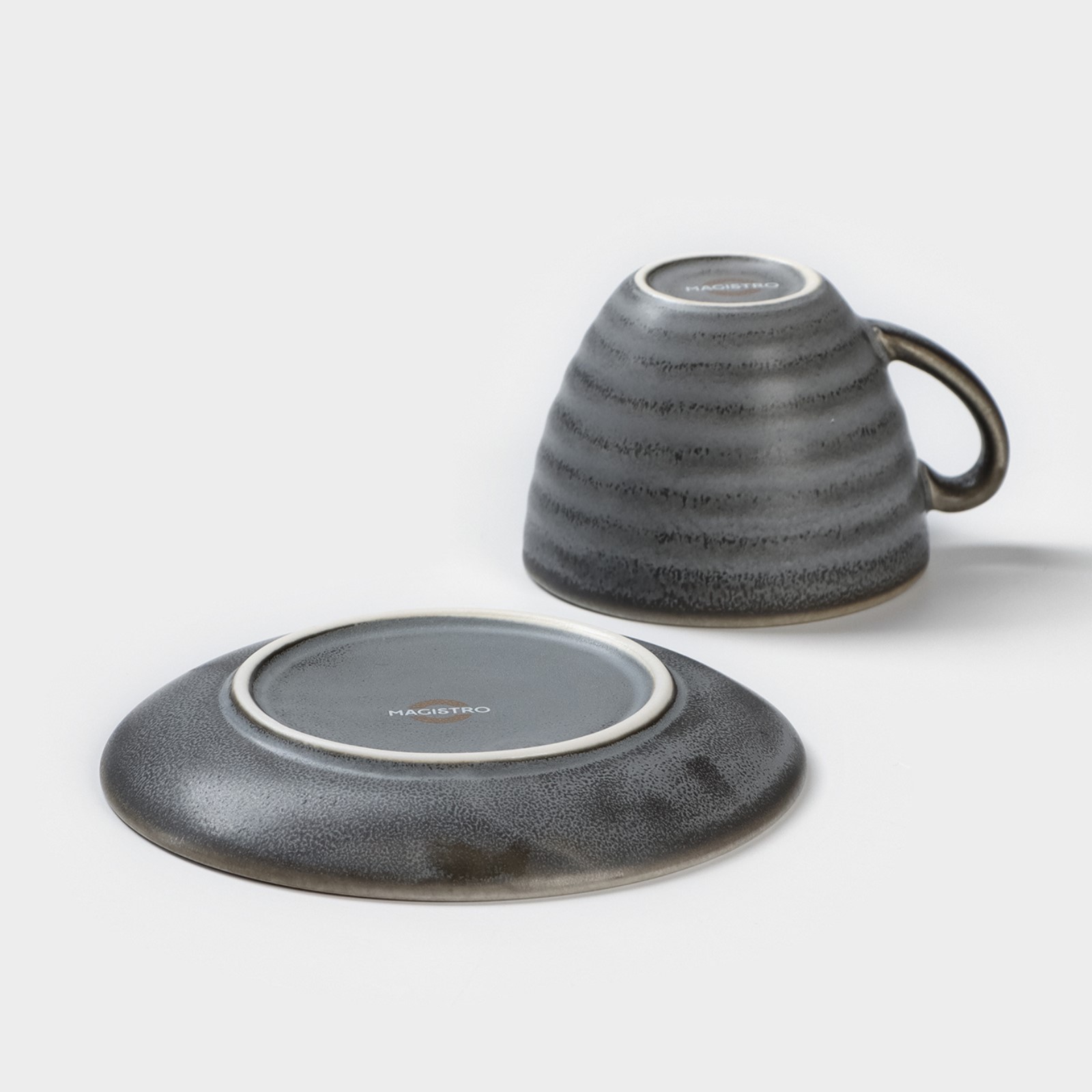Чайная пара фарфоровая Magistro Urban, 2 предмета: чашка 200 мл, блюдце D=14,2 см, цвет серый