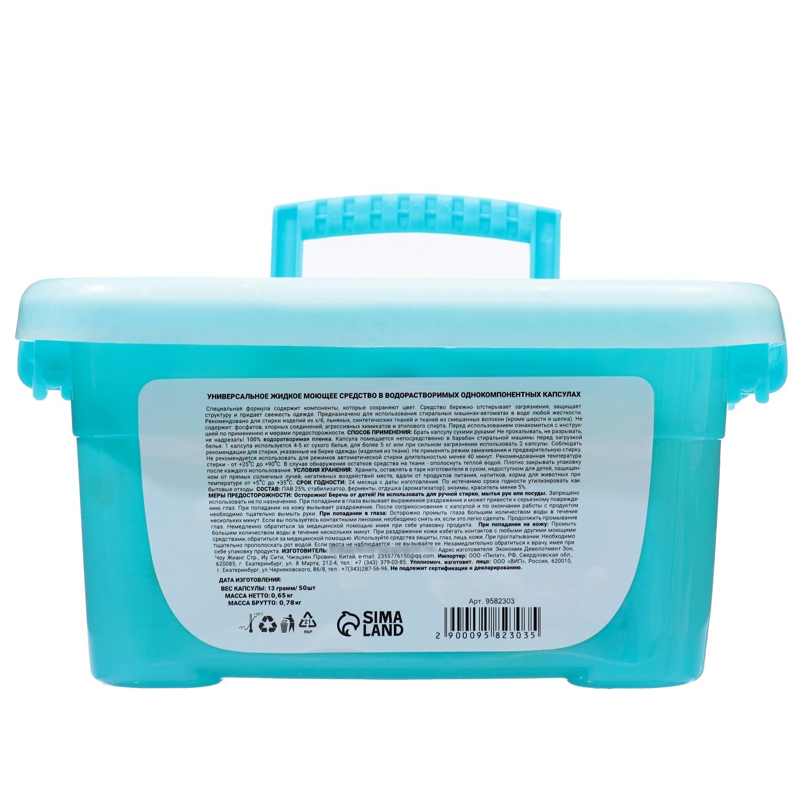 Капсулы для стирки, 3в1, свежесть васильков, 13г*50шт. Специальная формула содержит компоненты, которые сохраняют цвет. Средство бережно отстирывает загрязнения, защищает структуру и придает свежесть одежде. Предназначено для использования стиральных машинах-автоматах в воде любой жесткости. Рекомендовано: для стирки изделий из х/б, льняных, синтетических тканей и тканей из смешанных волокон (кроме шерсти и шелка). Не содержит: фосфатов, хлорных соединений, агрессивных химикатов и этилового спирта. Перед использованием ознакомиться с инструкцией по применению и мерами предосторожности. Способ применения: Брать капсулу сухими руками! Не прокалывать, не разрывать, не надрезать! 100% водорастворимая пленка. Капсула помещается непосредственно барабан стиральной машины перед загрузкой белья: 1 капсула используется 4-5 кг сухого белья, для более 5 кг или при сильном загрязнении использовать 2 капсулы. Соблюдать рекомендации для стирки, указанные на бирке одежды (изделия из ткани). Не применять режим замачивания и предварительную стирку. Не рекомендуется использовать для режимов автоматической стирки длительностью менее 40 минут. Рекомендованная температура стирки - от +25 С до +90 С. В случае обнаружения остатков средства на ткани - ополоснуть теплой водой. Плотно закрывать упаковку после каждого использования. Условия хранения: Хранить, оставлять в таре изготовителя в сухом, недоступном для детей месте, защищенном от прямых солнечных лучей, негативных воздействий месте, вдали от продуктов питания, напитков, корма для животных при температуре от +5 С°до+35 С. Состав: ПАВ 25%, стабилизатор, ферменты, отдушка (ароматизатор), энзимы, краситель менее 5%. Меры предосторожности: Осторожно! Беречь от детей! Не использовать для ручной стирки, мытья рук или посуды. Объём, л: 0.65 Назначение: Для всех видов тканей Вид стирки: Автомат Количество компонентов: 3  развернуть описание ▼