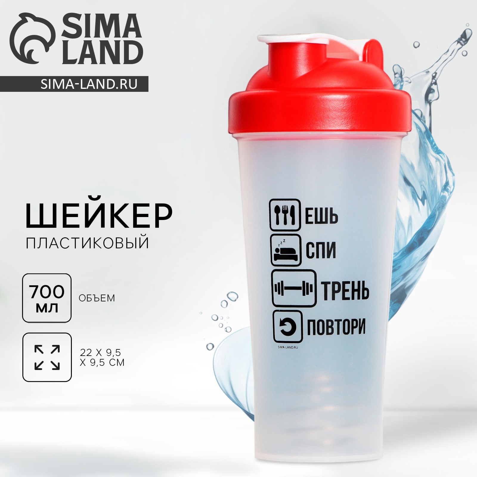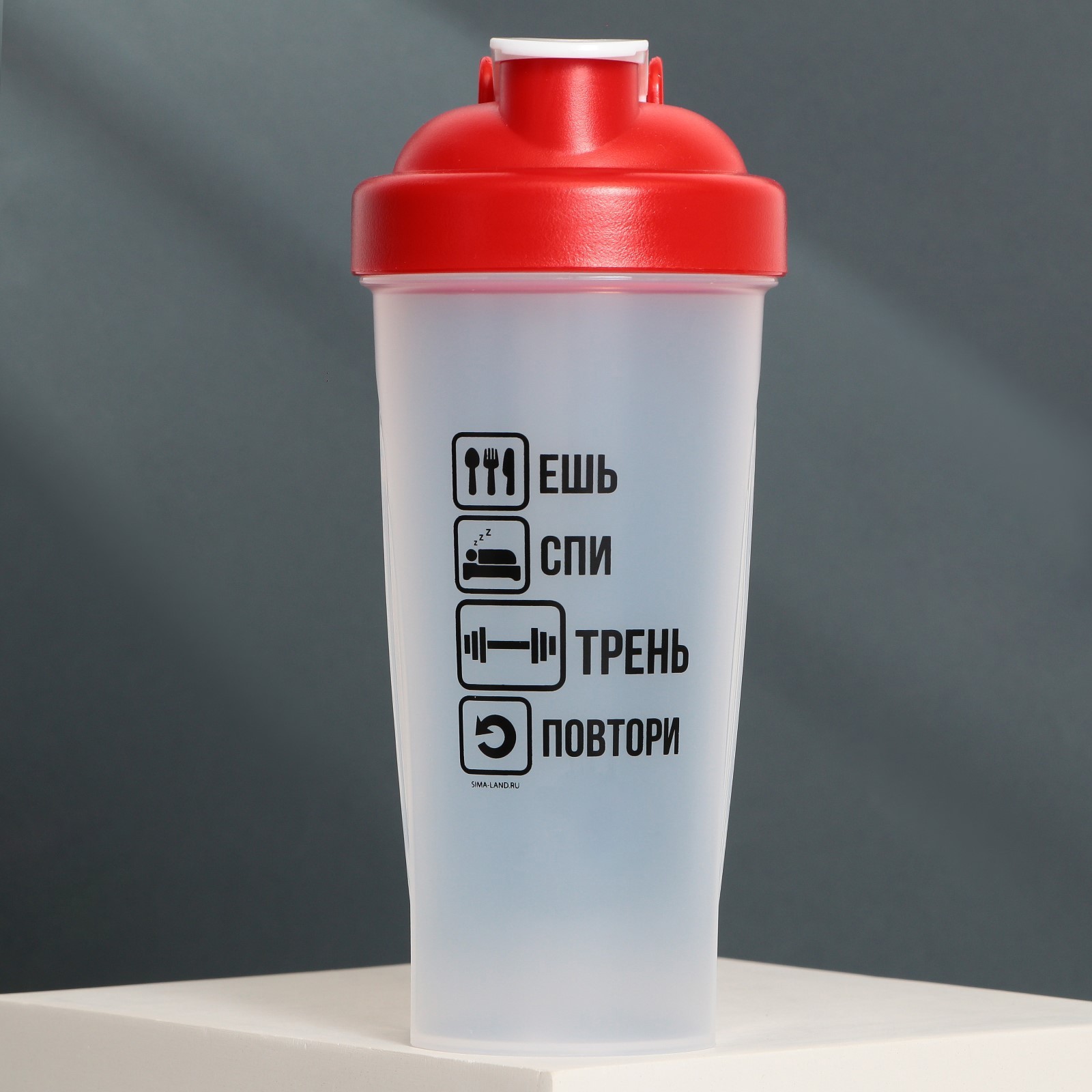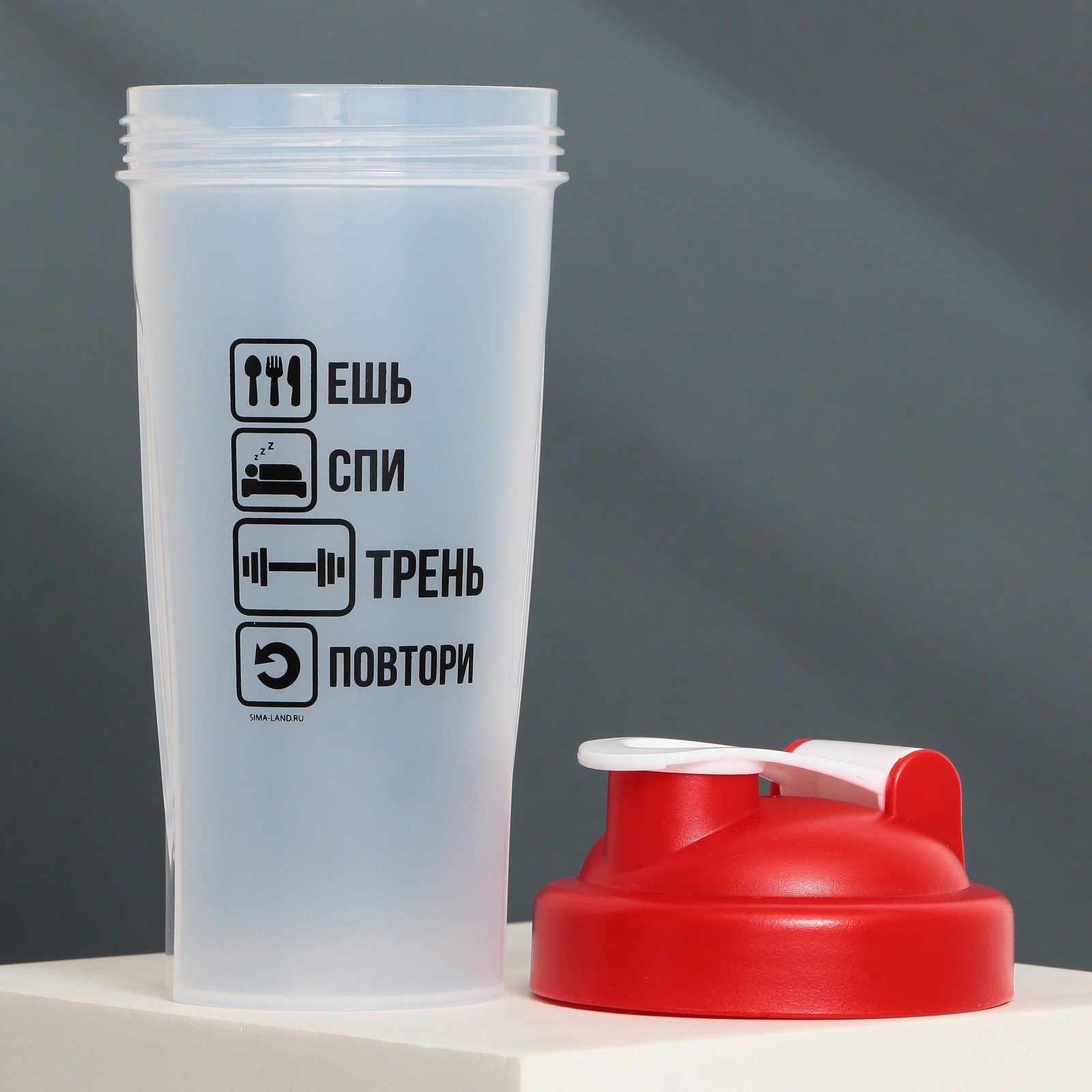 Шейкер пластиковый «ешь, спи, трень», 700 мл. Цвет: Красный Цвет: Прозрачный parts count: 0 Объём, мл: 700 Материал: Пластик Вид: Шейкер  развернуть описание ▼