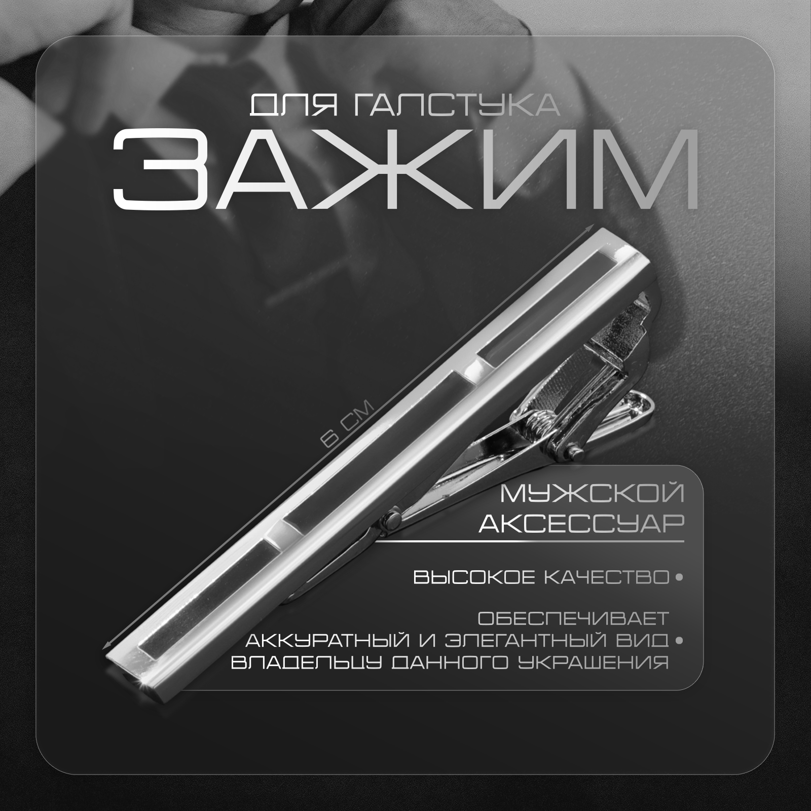 Зажим для галстука медный «классический» трио, цвет чёрный в серебре