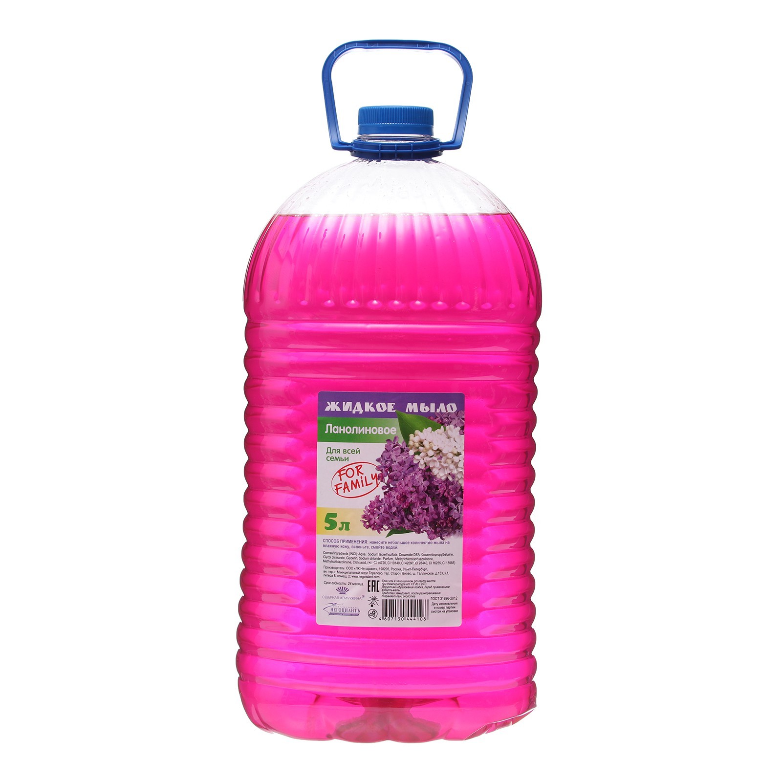 Жидкое мыло для всей семьи "ланолиновое", 5 л. Жидкое мыло "Для всей семьи" в канистрах - это весьма выгодное , с экономической точки зрения, решение особенно в случаях, когда расход жидкого мыла достаточно велик (сети ресторанов быстрого питания, корпоративные офисы, крупные организации и т. д. ) Прекрасно пенится, эффективно очищает и не сушит кожу, удобно и экономично в применении, бережно ухаживает за кожей оставляя надолго приятное ощущение чистоты и свежести. Состав/Ingredients (INCI): Aqua, Sodium laurethsulfate, Cocamide DEA, Cocamidopropylbetaine, Glycol distearate, Glycerin, Sodium chloride, Parfum, Methylchloroisothiazolinone, Methylisothiazolinone, Citric acid. (+/ CI 14720, CI19140 CI 42090 CI 28440 CI 16255, CI 15985) Цвет: Розовый parts count: 0 Вес, г/Объём, мл: 5000 Аромат: Сирень Тип: Жидкое Вид мыла: Туалетное : 0 Температурное ограничение: Нет Товар 18+: Нет  развернуть описание ▼