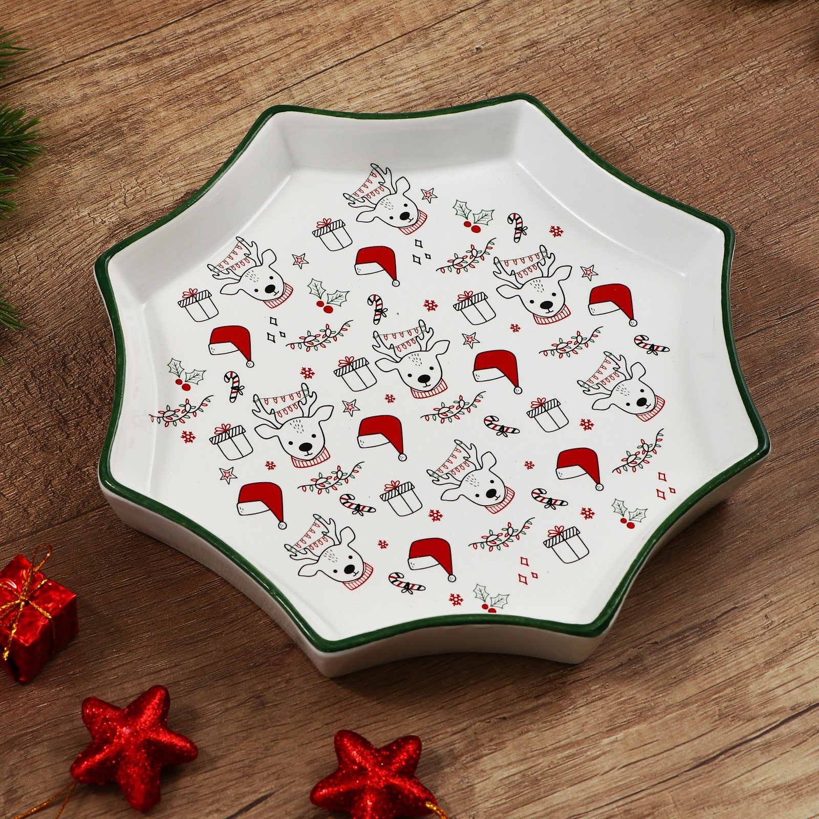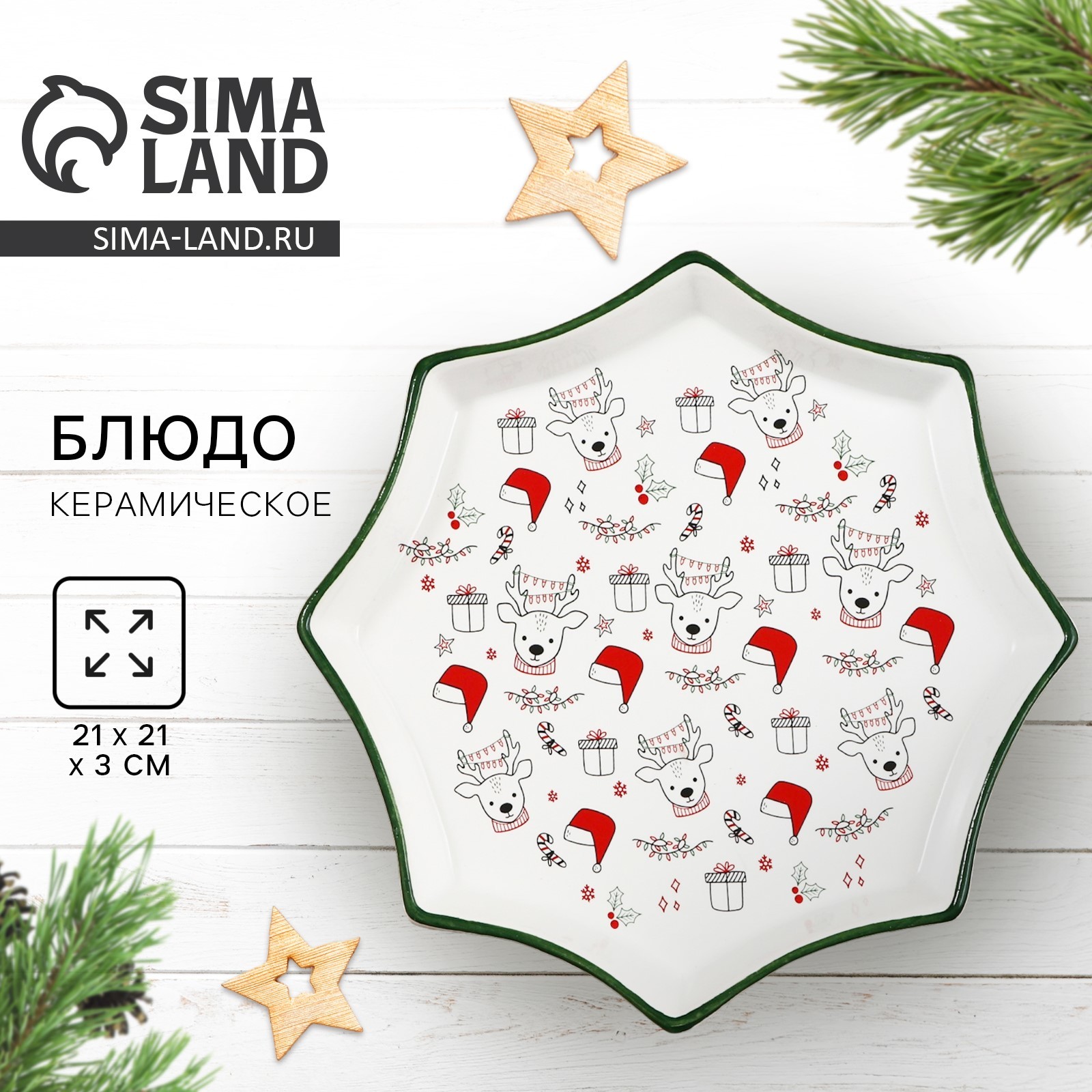 Новый год. блюдо керамическое «новогодние олени», 21 х 21 х 3 см