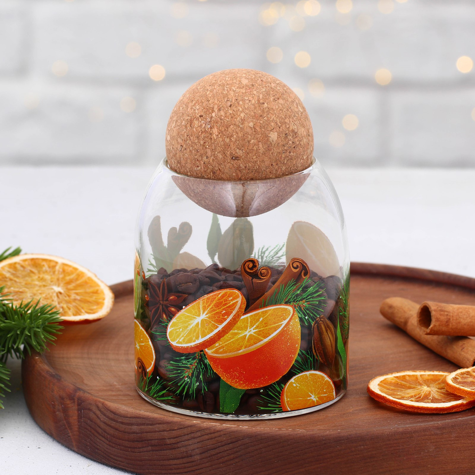Банка для хранения новогодняя «аромат праздника», 500 мл. Банка для сыпучих продуктов Банка подходит для хранения сыпучих продуктов: различных круп, макарон, сахара и прочих продуктов. Благодаря минималистичному дизайну впишется в любой интерьер и дополнит его. Изготовлена из экологичных материалов: стекла и пробки. Дополнительно Можно мыть в посудомоечной машине БЕЗ КРЫШКИ Цвет: Прозрачный parts count: 0 Объём, л: 0.5 Объём, мл: 500 Тематика: Новогодняя Материал крышки: Пробка Материал: Пробка Материал: Стекло Герметичная крышка: Нет Объём: 300 мл - 500 мл Текстура: Гладкая Назначение: Универсальная Особенности: Без особенностей Форма: Круг  развернуть описание ▼