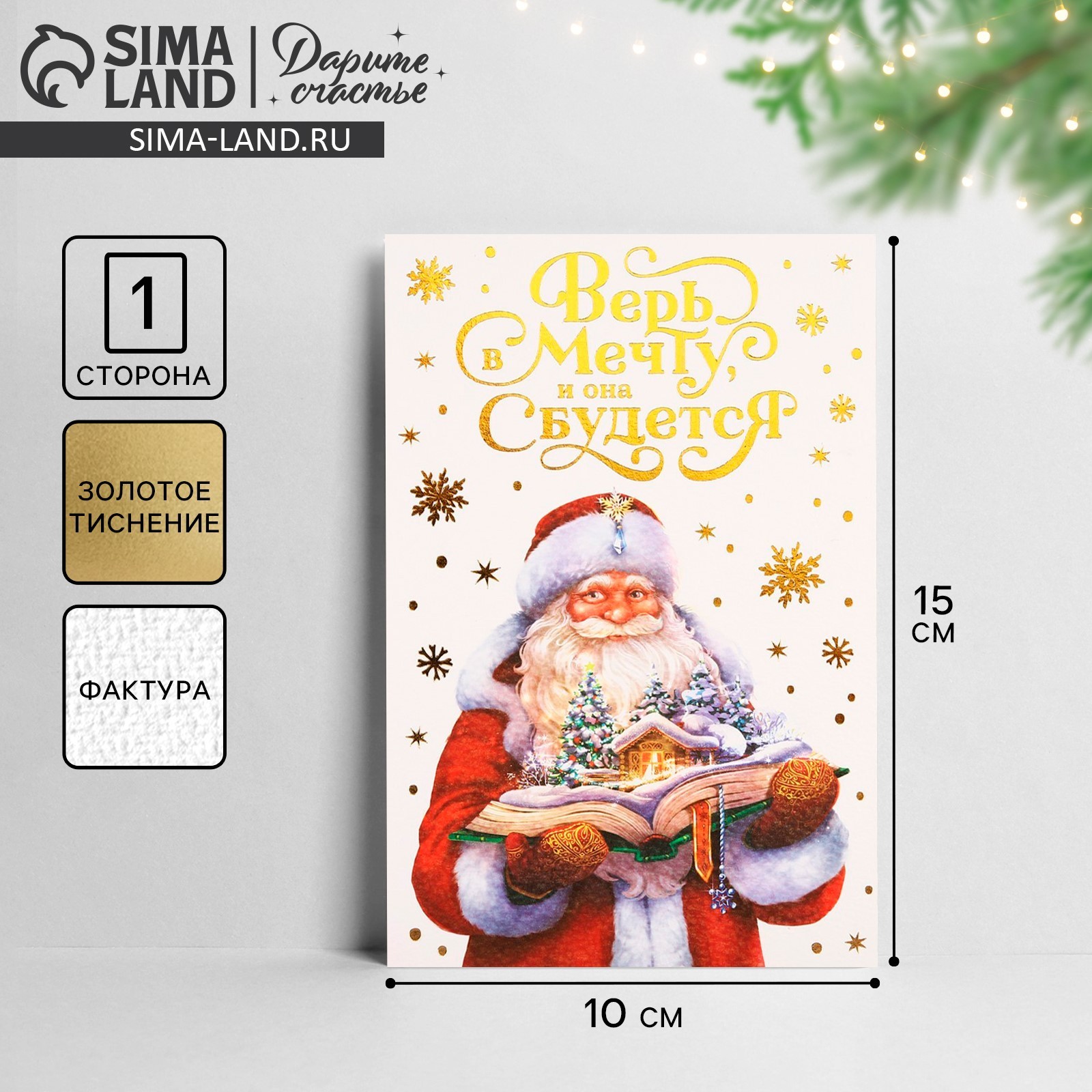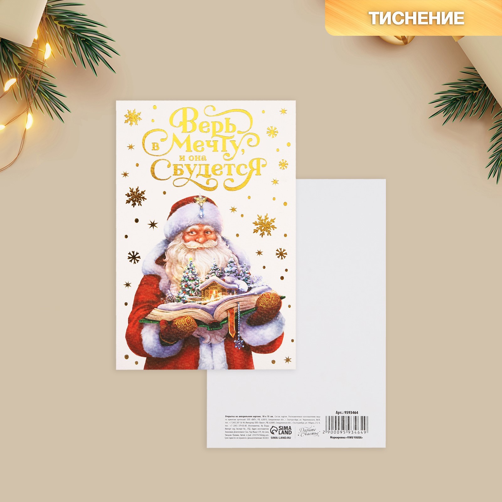 Открытка с новым годом на акварельном картоне «верь в мечту, и она сбудется», тиснение, 10 х 15 см. Цвет:Разноцветный|Для кого:Унисекс|Отделка:Фактурная бумага|Отделка:Тиснение|Символ года:Нет|Тематика праздника:Новый год|Адресат:Без адресата|Материал:Картон|Размер:Малый (9-15 см)|Форма:Стандарт|Страна:Китай  развернуть описание ▼
