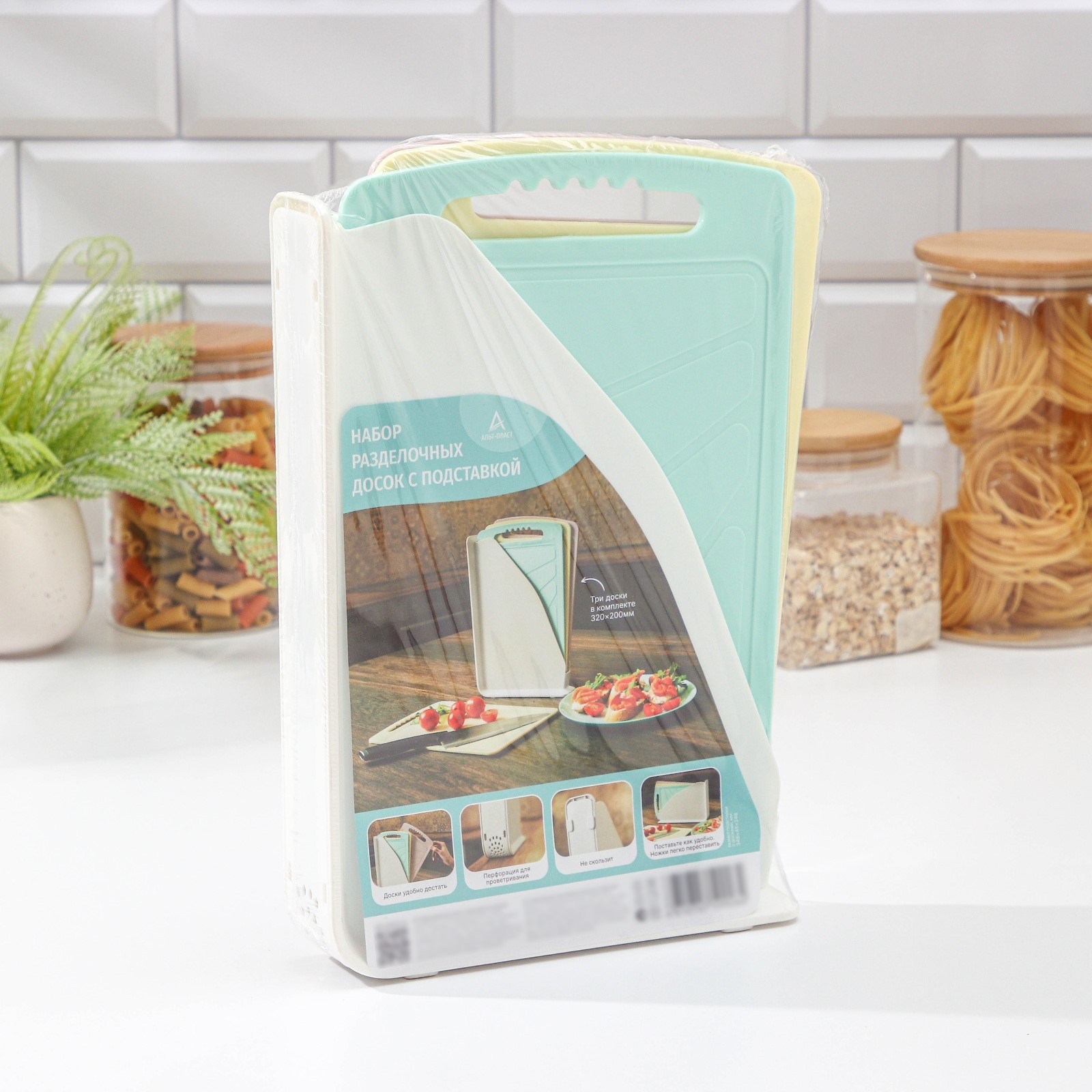 Набор досок разделочных на подставке, 3 шт, 32x20 см, цвет белый