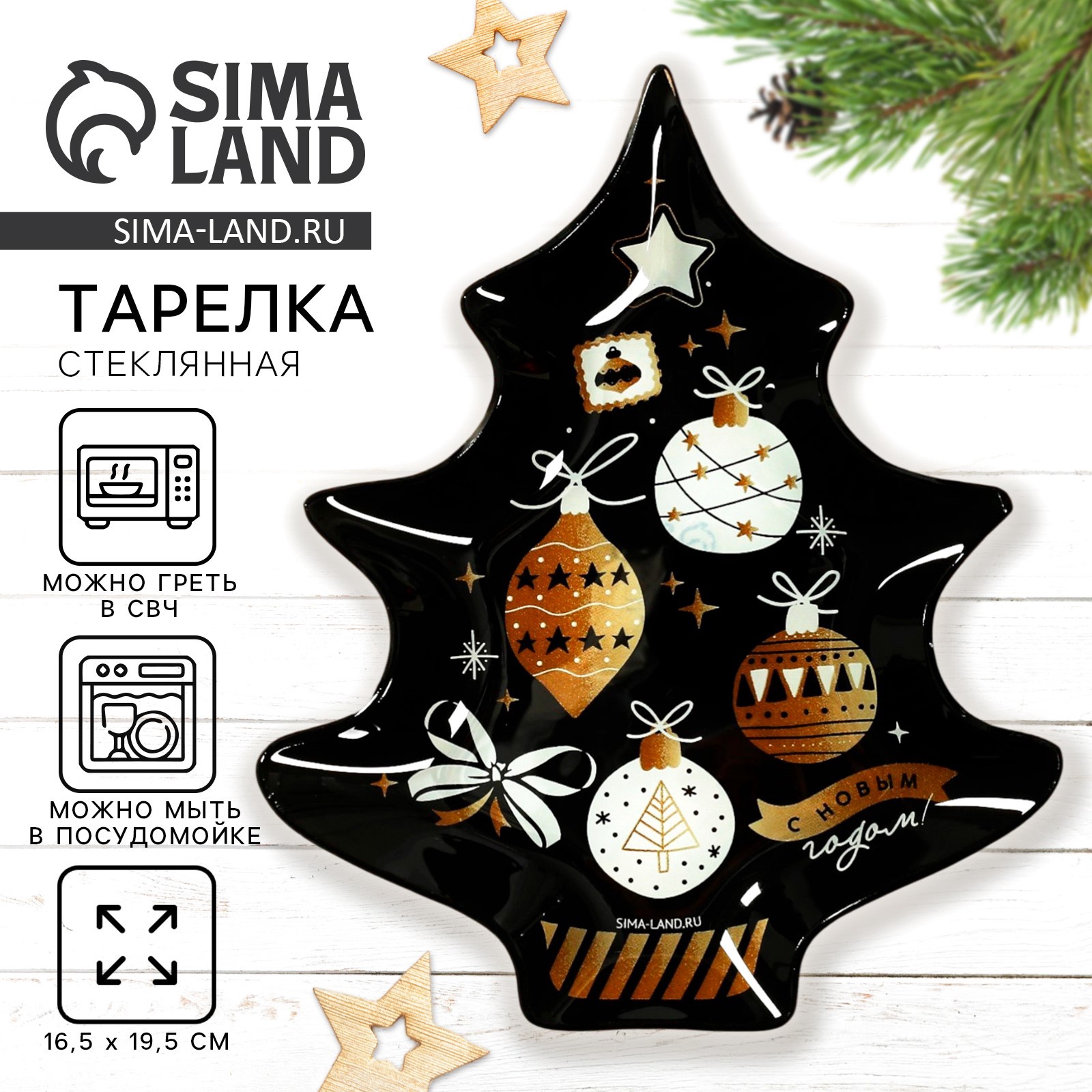 Тарелка плоская новогодняя «с новым годом: игрушки», 16.5x19.5 см