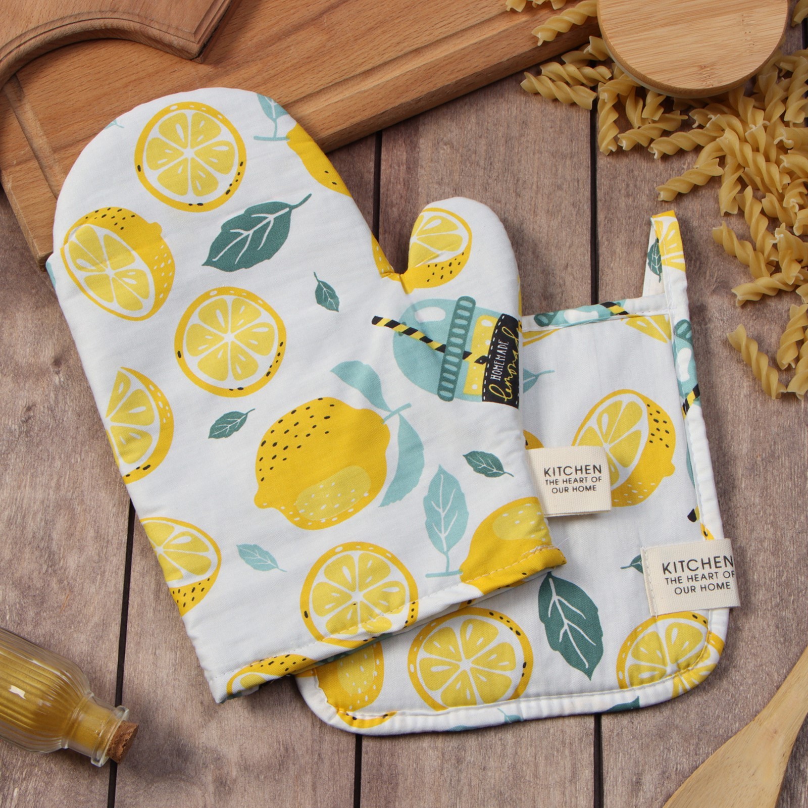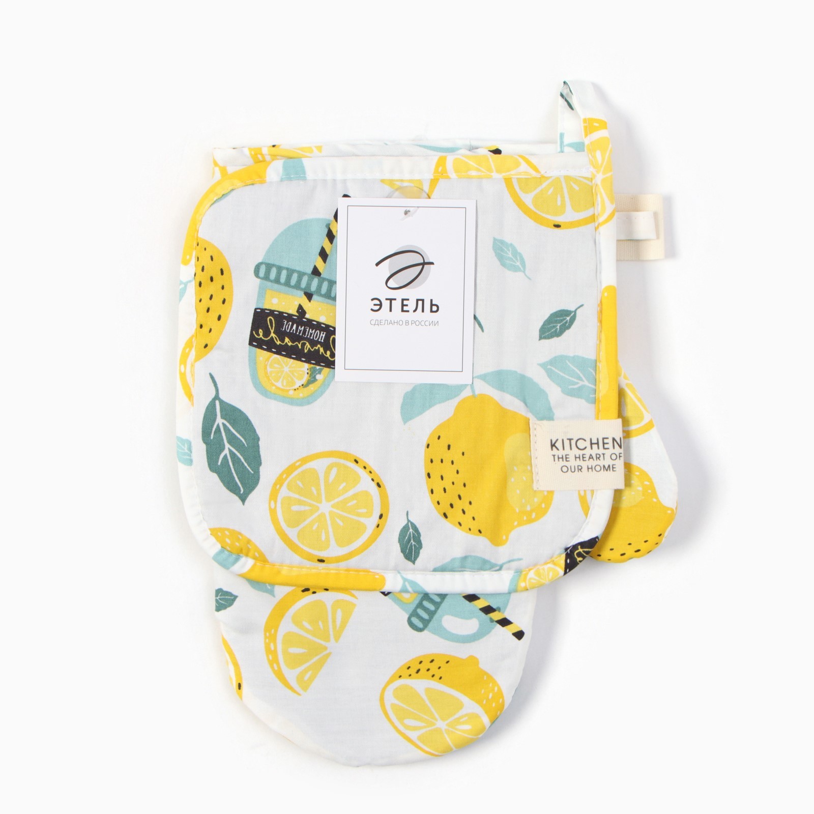 Набор кух. этель "лимонад": варежка 20х28 см, прихватка 19х19 см, 80% хл, 20% пэ
