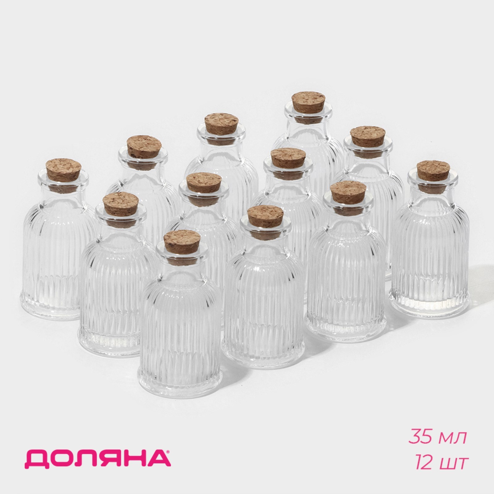 Набор баночек стеклянных для специй с пробковой крышкой доляна «парфе. афина», 35 мл, 4,3x8 см, 12 шт, цвет прозрачный
