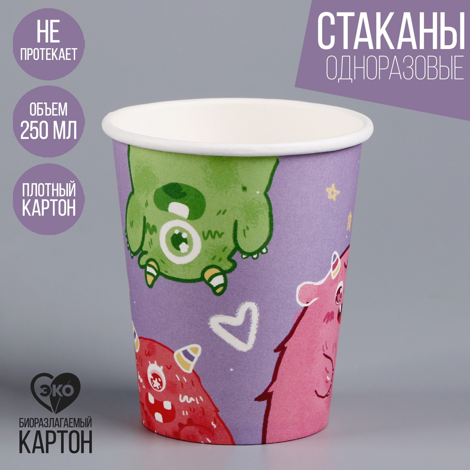 Стакан одноразовый бумажный "монстрики", 250 мл