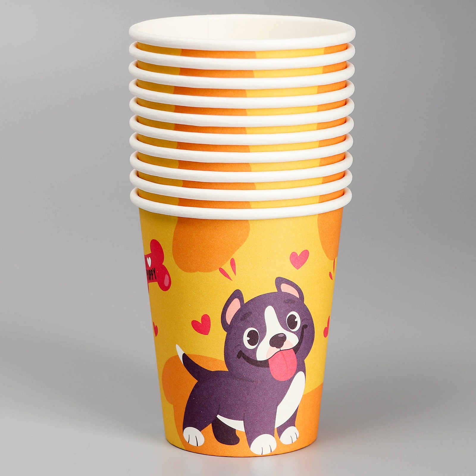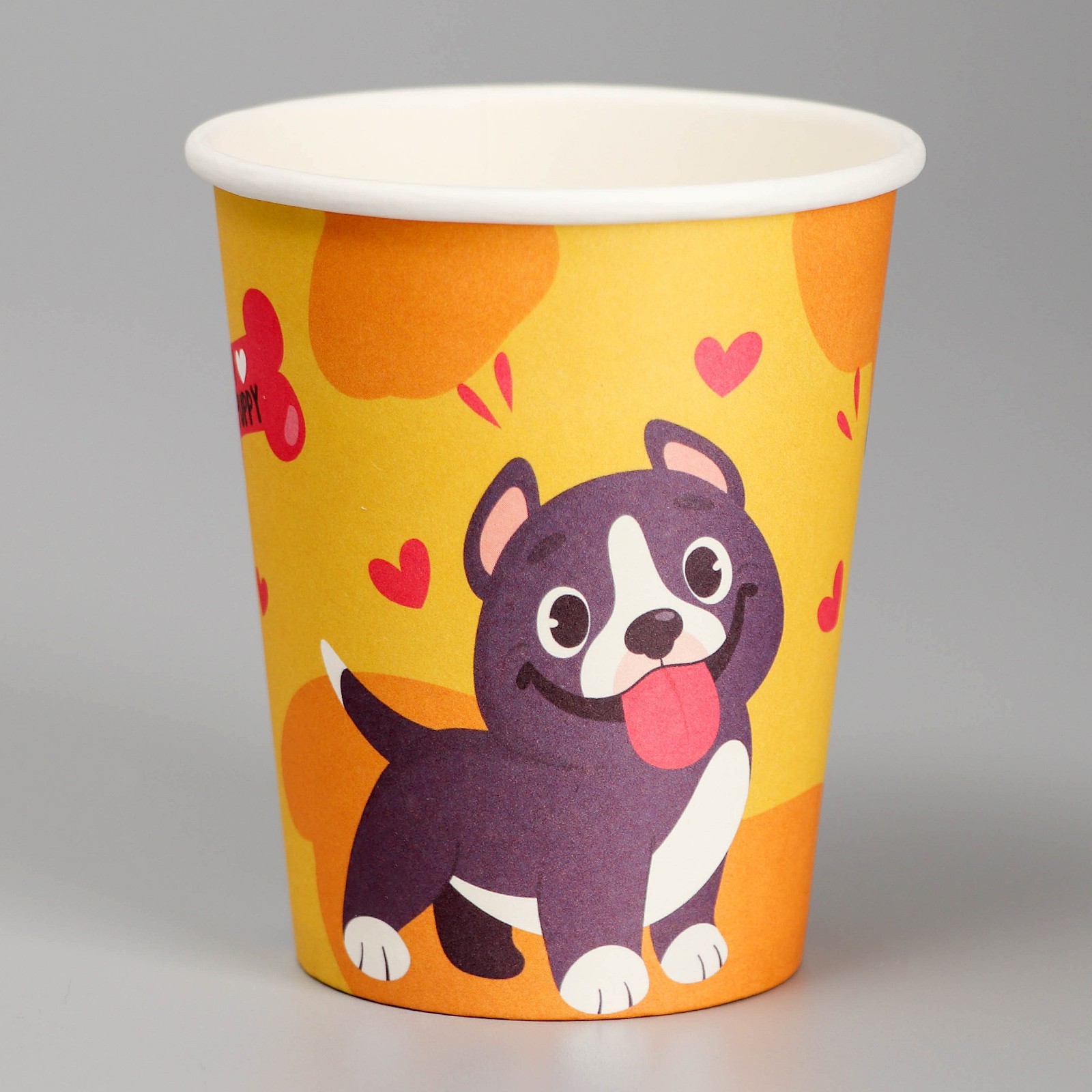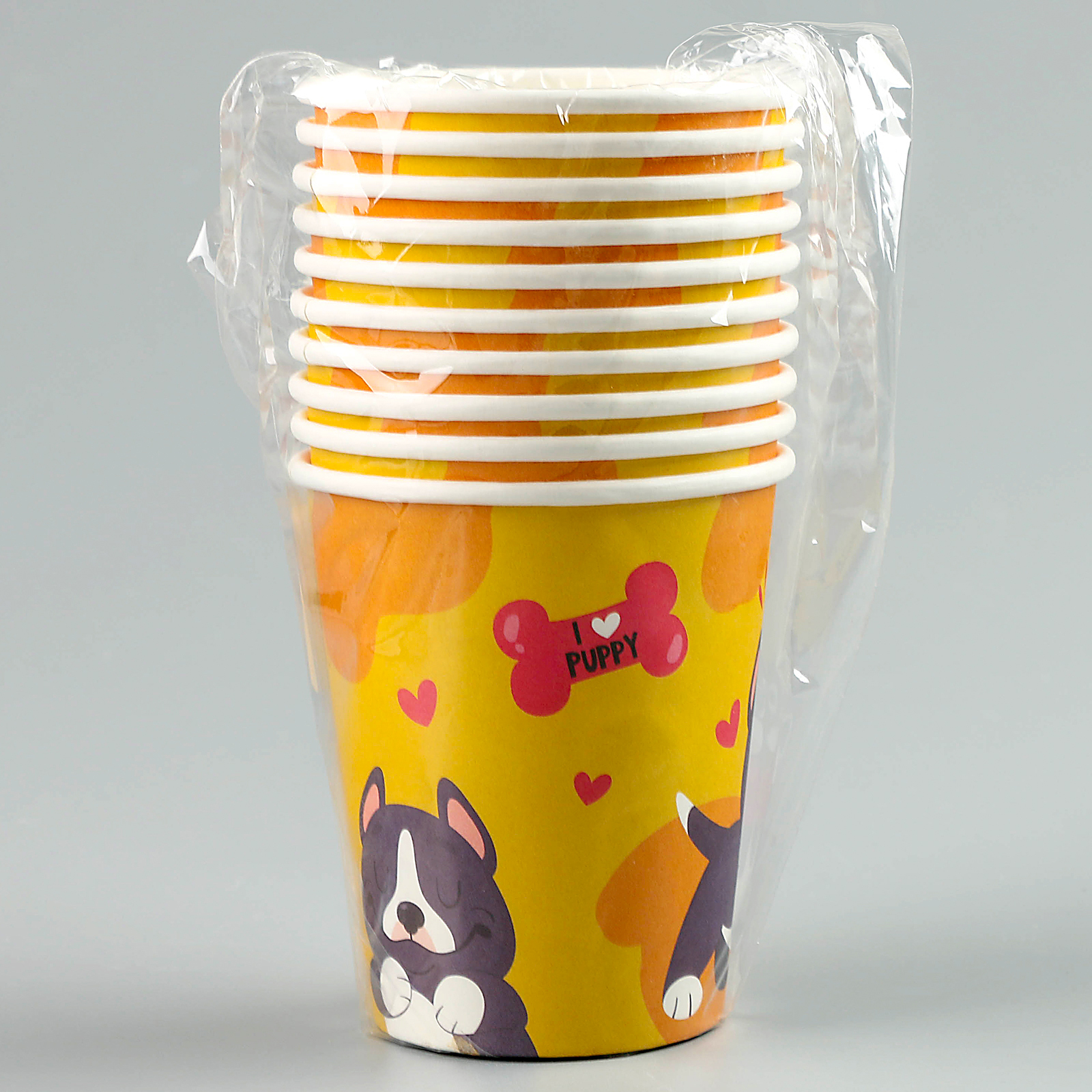 Стакан одноразовый бумажный "щенята", 250 мл. Посуда изготовлена из высококачественной бумаги без добавления поликарбоната, меламина и поливинилхлорида. Такие изделия безопасны, они не «раскисают» при взаимодействиями с продуктами питания. Преимущества бумажной посудыЭкологически безвредна: полностью разлагается в естественной среде. Гигиеничность и безопасность: при изготовлении используется первичный и вторичный картон с ламинацией, крафт-бумага и пищевые красители. Выдерживает высокую и низкую температуру. Сохраняет вкус еды и напитков, не выделяя вредных веществ, при нагреве. Тарелки и стаканы из бумаги приятнее на ощупь, чем аналогичная посуда из пластика. Такую посуду не надо мыть и невозможно разбить. Где применяется бумажная посуда:детские заведения и мероприятия, организация питание на свежем воздухе, точки продажи фастфуда, летние кафе и бистро, вендинг и офисы, доставка обедов. Цвет: Жёлтый Диаметр, см: 8 В наборе, шт.: 1 Количество слоёв: 1 Количество персон: 1 Объём, мл: 250 Материал: Картон Вид: Стакан Вид: Стаканы Вид: Посуда и аксессуары  развернуть описание ▼