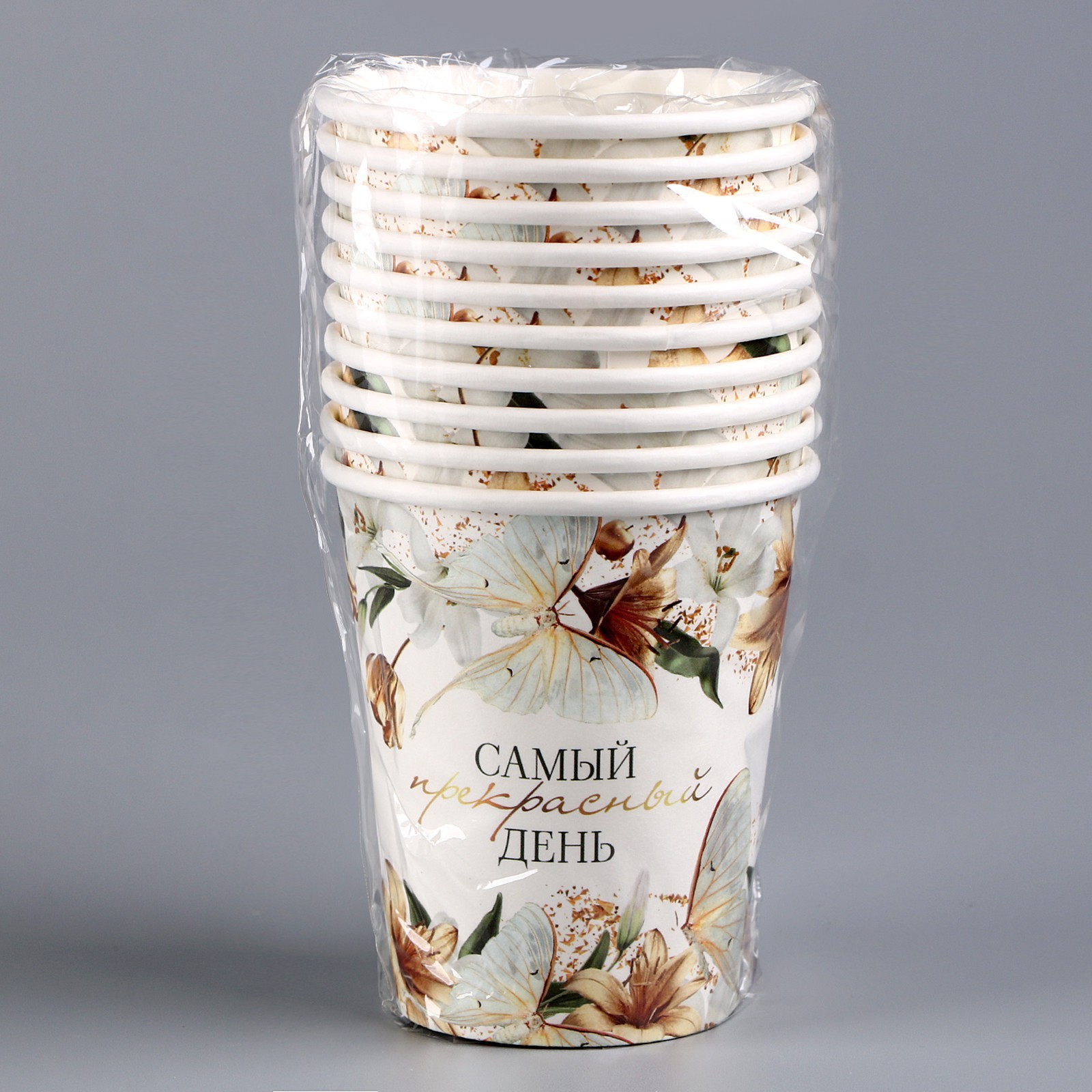 Стакан одноразовый бумажный "самый прекрасный день", 250 мл. Посуда изготовлена из высококачественной бумаги без добавления поликарбоната, меламина и поливинилхлорида. Такие изделия безопасны, они не «раскисают» при взаимодействиями с продуктами питания. Преимущества бумажной посудыЭкологически безвредна: полностью разлагается в естественной среде. Гигиеничность и безопасность: при изготовлении используется первичный и вторичный картон с ламинацией, крафт-бумага и пищевые красители. Выдерживает высокую и низкую температуру. Сохраняет вкус еды и напитков, не выделяя вредных веществ, при нагреве. Тарелки и стаканы из бумаги приятнее на ощупь, чем аналогичная посуда из пластика. Такую посуду не надо мыть и невозможно разбить. Где применяется бумажная посуда:детские заведения и мероприятия, организация питание на свежем воздухе, точки продажи фастфуда, летние кафе и бистро, вендинг и офисы, доставка обедов. Цвет: Белый Диаметр, см: 8 Количество слоёв: 1 Количество персон: 1 Объём, мл: 250 Материал: Бумага Вид: Стакан Вид: Стаканы Вид: Посуда и аксессуары  развернуть описание ▼