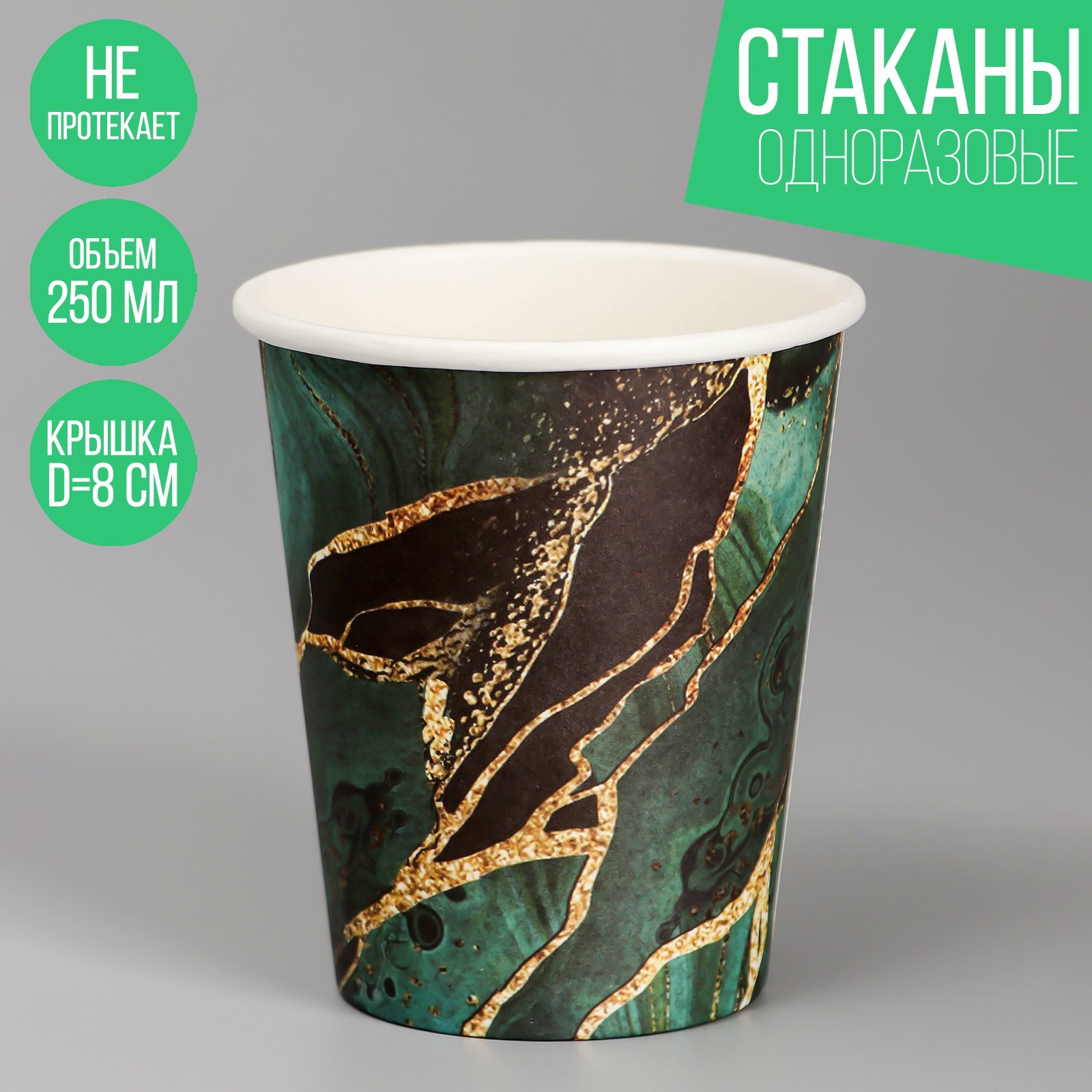 Стакан одноразовый бумажный "мрамори",изумруд, 250 мл. Посуда изготовлена из высококачественной бумаги без добавления поликарбоната, меламина и поливинилхлорида. Такие изделия безопасны, они не «раскисают» при взаимодействиями с продуктами питания. Преимущества бумажной посудыЭкологически безвредна: полностью разлагается в естественной среде. Гигиеничность и безопасность: при изготовлении используется первичный и вторичный картон с ламинацией, крафт-бумага и пищевые красители. Выдерживает высокую и низкую температуру. Сохраняет вкус еды и напитков, не выделяя вредных веществ, при нагреве. Тарелки и стаканы из бумаги приятнее на ощупь, чем аналогичная посуда из пластика. Такую посуду не надо мыть и невозможно разбить. Где применяется бумажная посуда:детские заведения и мероприятия, организация питание на свежем воздухе, точки продажи фастфуда, летние кафе и бистро, вендинг и офисы, доставка обедов. Цвет: Чёрный Цвет: Зелёный Диаметр, см: 8 В наборе, шт.: 1 Количество слоёв: 1 Количество персон: 1 Объём, мл: 250 Материал: Картон Вид: Стакан Вид: Стаканы Вид: Посуда и аксессуары  развернуть описание ▼