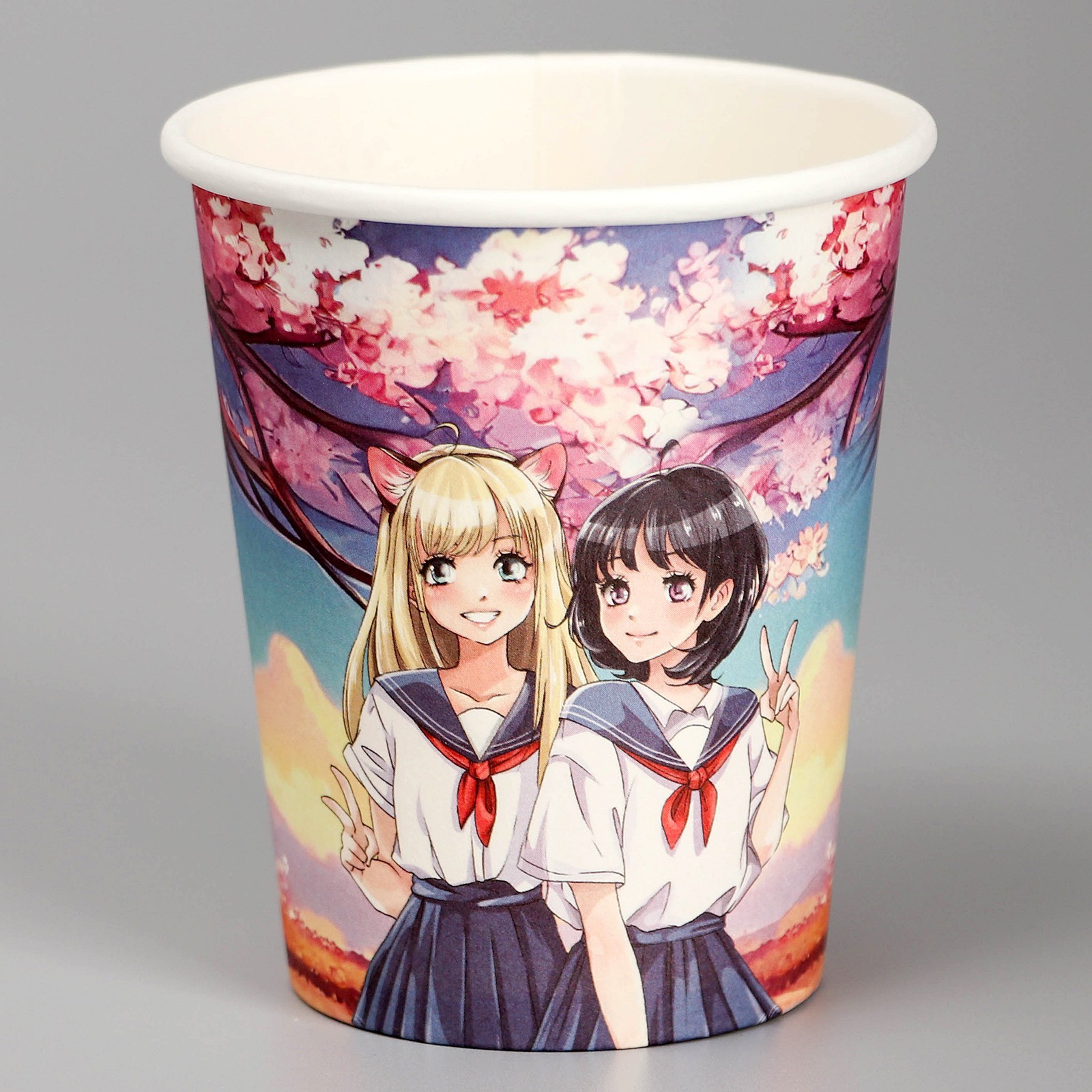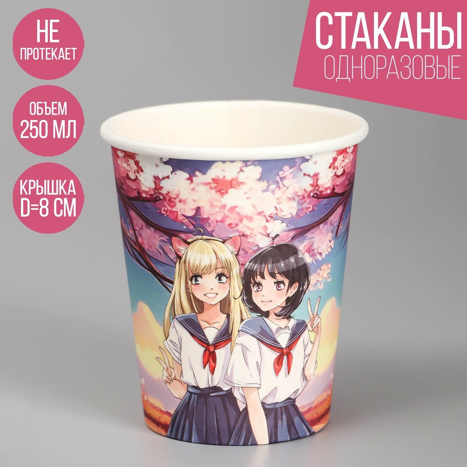 Стакан одноразовый бумажный "аниме", 250 мл. Посуда изготовлена из высококачественной бумаги без добавления поликарбоната, меламина и поливинилхлорида. Такие изделия безопасны, они не «раскисают» при взаимодействиями с продуктами питания.