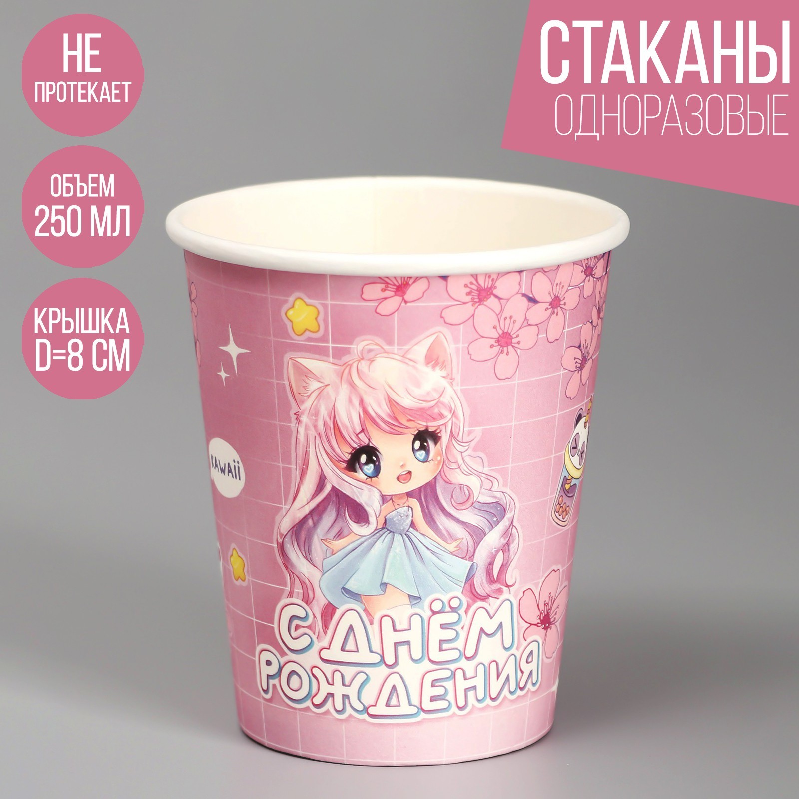 Стакан одноразовый бумажный "аниме", 250 мл