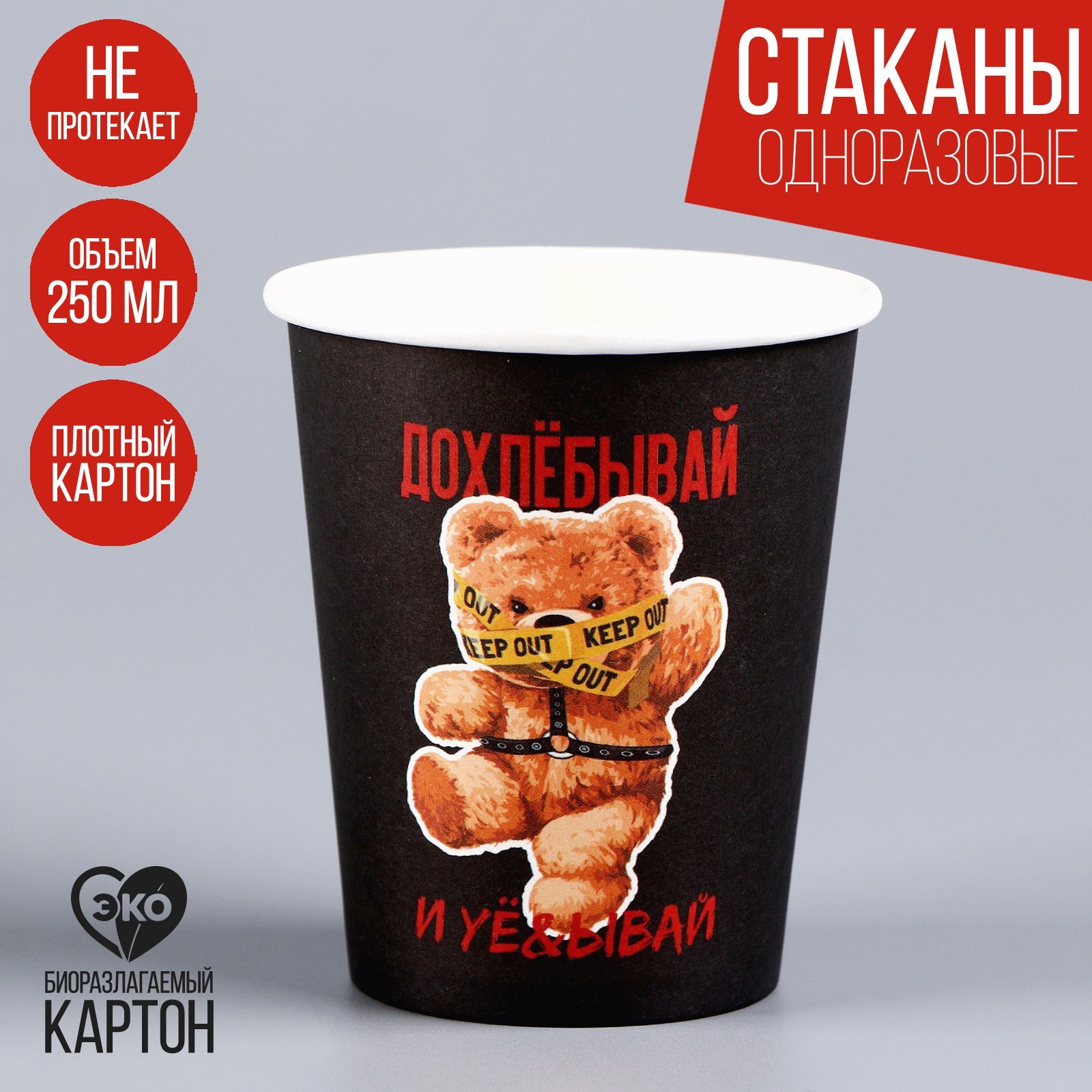 Стакан одноразовый бумажный "дожёвывай", 250 мл