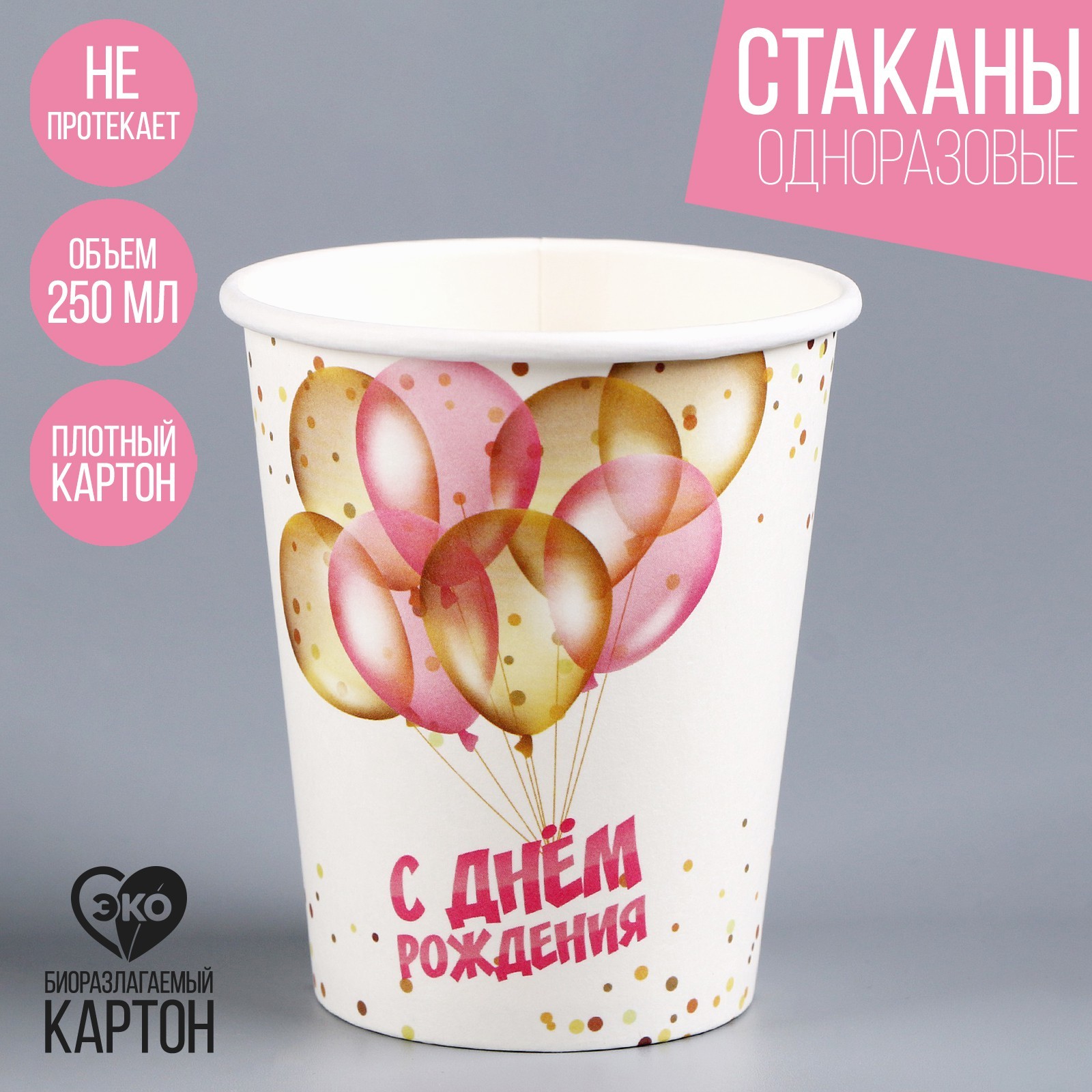 Стакан одноразовый бумажный "с днём рождения",шары", 250 мл. Посуда изготовлена из высококачественной бумаги без добавления поликарбоната, меламина и поливинилхлорида. Такие изделия безопасны, они не «раскисают» при взаимодействиями с продуктами питания. Преимущества бумажной посудыЭкологически безвредна: полностью разлагается в естественной среде. Гигиеничность и безопасность: при изготовлении используется первичный и вторичный картон с ламинацией, крафт-бумага и пищевые красители. Выдерживает высокую и низкую температуру. Сохраняет вкус еды и напитков, не выделяя вредных веществ, при нагреве. Тарелки и стаканы из бумаги приятнее на ощупь, чем аналогичная посуда из пластика. Такую посуду не надо мыть и невозможно разбить. Где применяется бумажная посуда:детские заведения и мероприятия, организация питание на свежем воздухе, точки продажи фастфуда, летние кафе и бистро, вендинг и офисы, доставка обедов. Цвет: Белый Диаметр, см: 8 Количество слоёв: 1 Количество персон: 1 Объём, мл: 250 tnved: 9505900000 Материал: Бумага Вид: Стакан Вид: Стаканы Вид: Посуда и аксессуары  развернуть описание ▼
