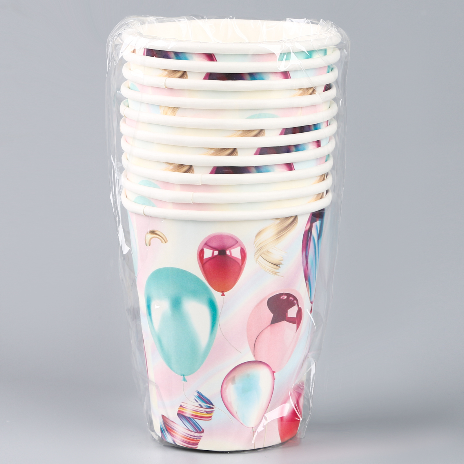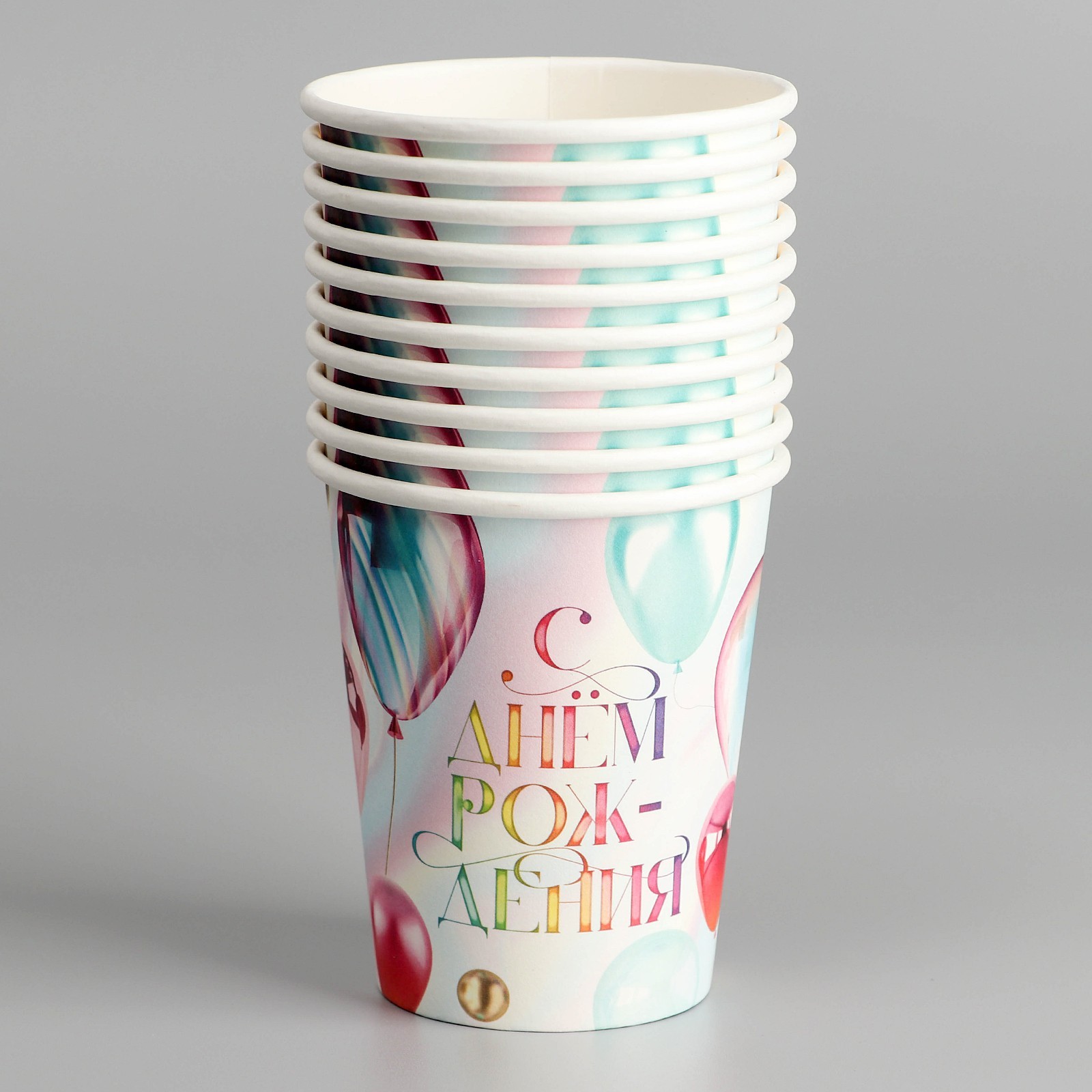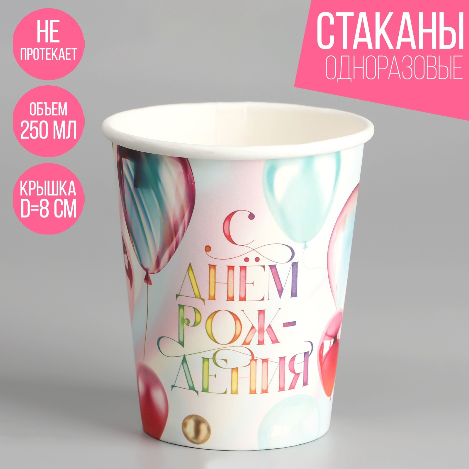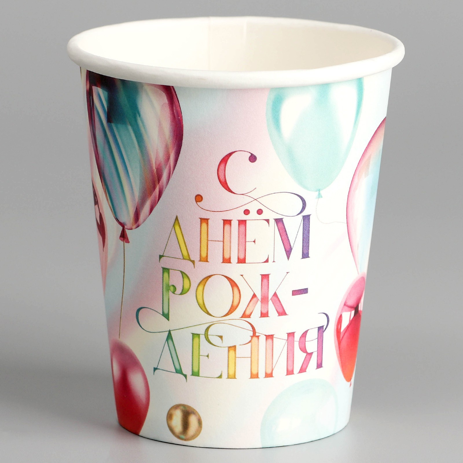 Стакан одноразовый бумажный "с днём рождения", шары", 250 мл