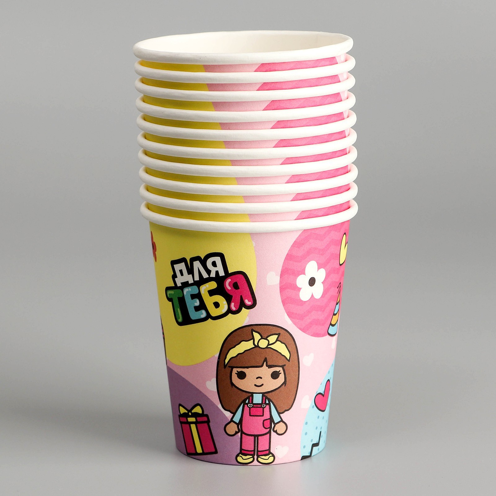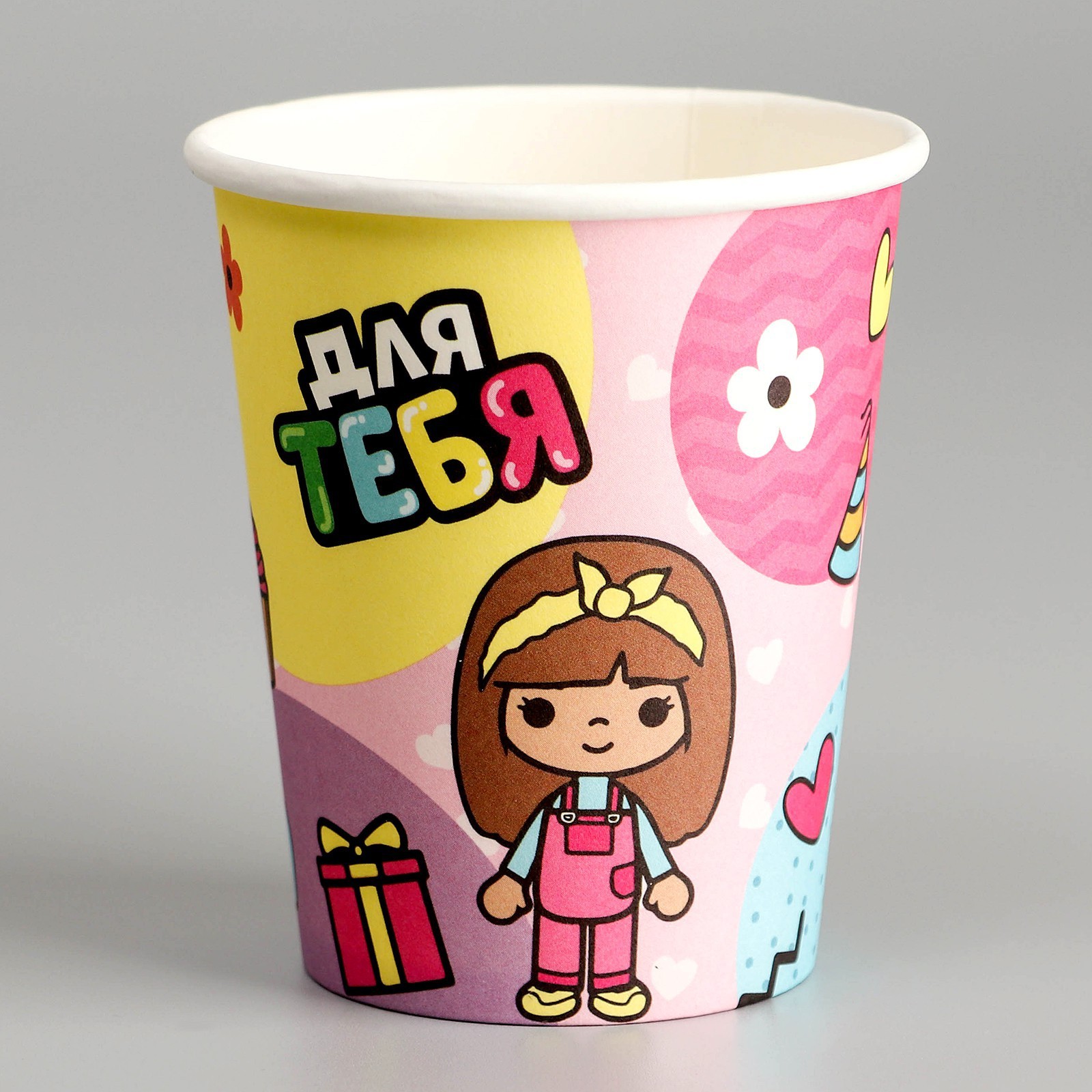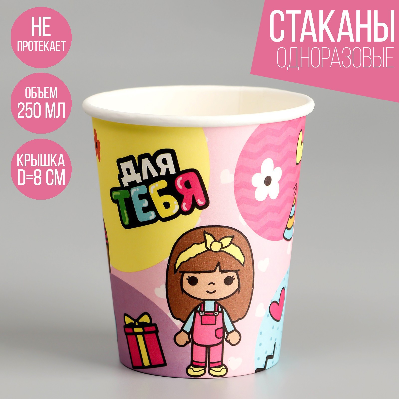 Стакан одноразовый бумажный "для тебя",девочка, 250 мл. Посуда изготовлена из высококачественной бумаги без добавления поликарбоната, меламина и поливинилхлорида. Такие изделия безопасны, они не «раскисают» при взаимодействиями с продуктами питания. Преимущества бумажной посудыЭкологически безвредна: полностью разлагается в естественной среде. Гигиеничность и безопасность: при изготовлении используется первичный и вторичный картон с ламинацией, крафт-бумага и пищевые красители. Выдерживает высокую и низкую температуру. Сохраняет вкус еды и напитков, не выделяя вредных веществ, при нагреве. Тарелки и стаканы из бумаги приятнее на ощупь, чем аналогичная посуда из пластика. Такую посуду не надо мыть и невозможно разбить. Где применяется бумажная посуда:детские заведения и мероприятия, организация питание на свежем воздухе, точки продажи фастфуда, летние кафе и бистро, вендинг и офисы, доставка обедов. Цвет: Розовый Цвет: Разноцветный Диаметр, см: 8 В наборе, шт.: 1 Количество слоёв: 1 Количество персон: 1 Объём, мл: 250 Материал: Картон Вид: Стакан Вид: Стаканы Вид: Посуда и аксессуары  развернуть описание ▼