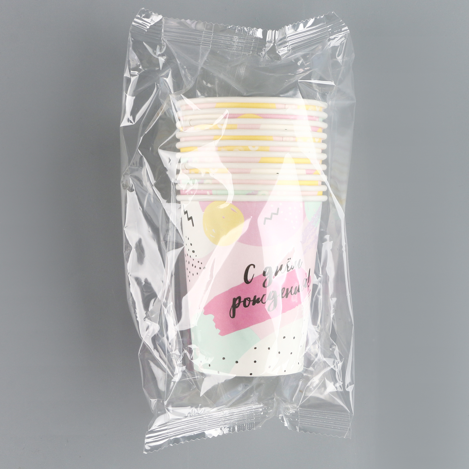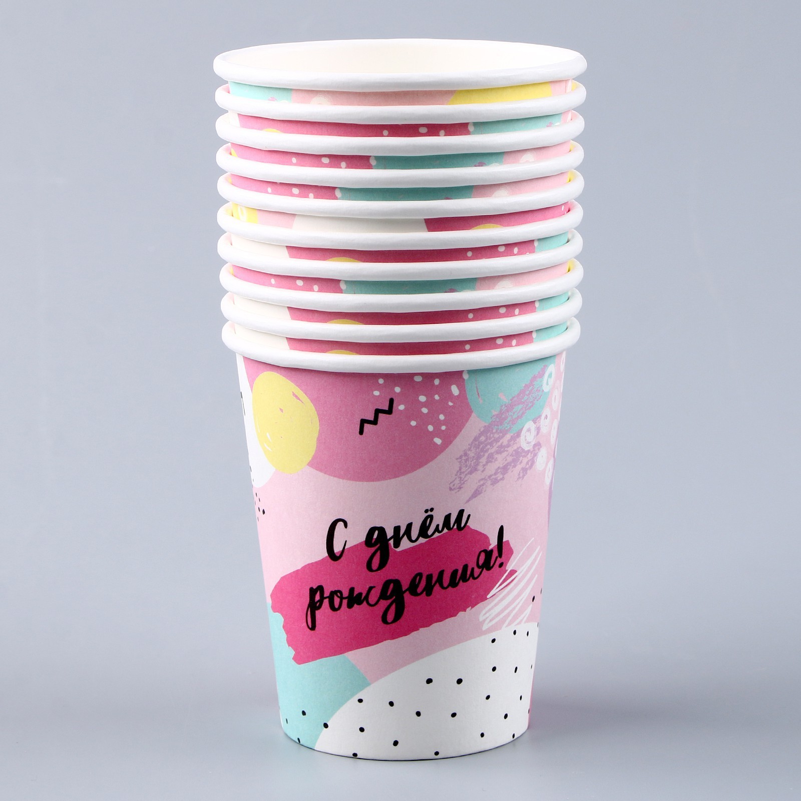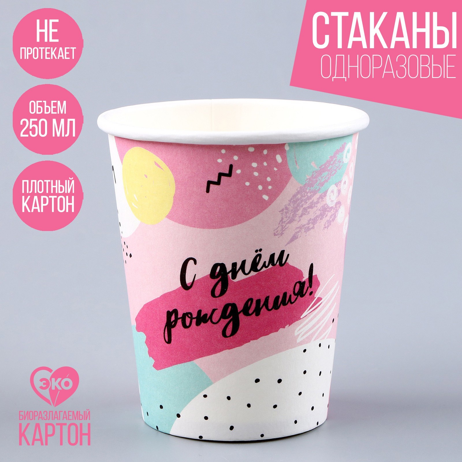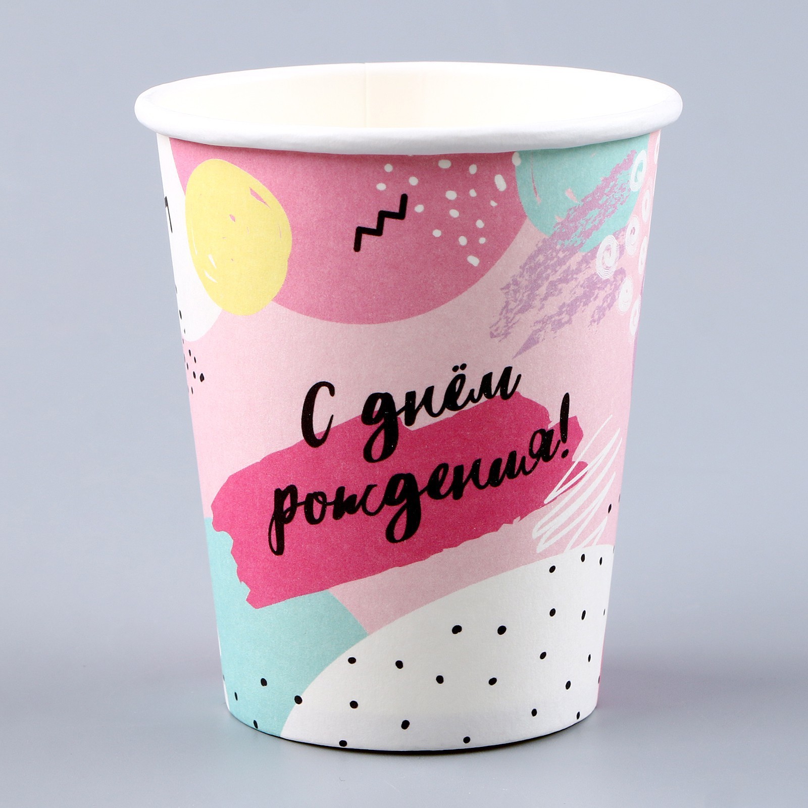 Стакан одноразовый бумажный "с днём рождения", 250 мл