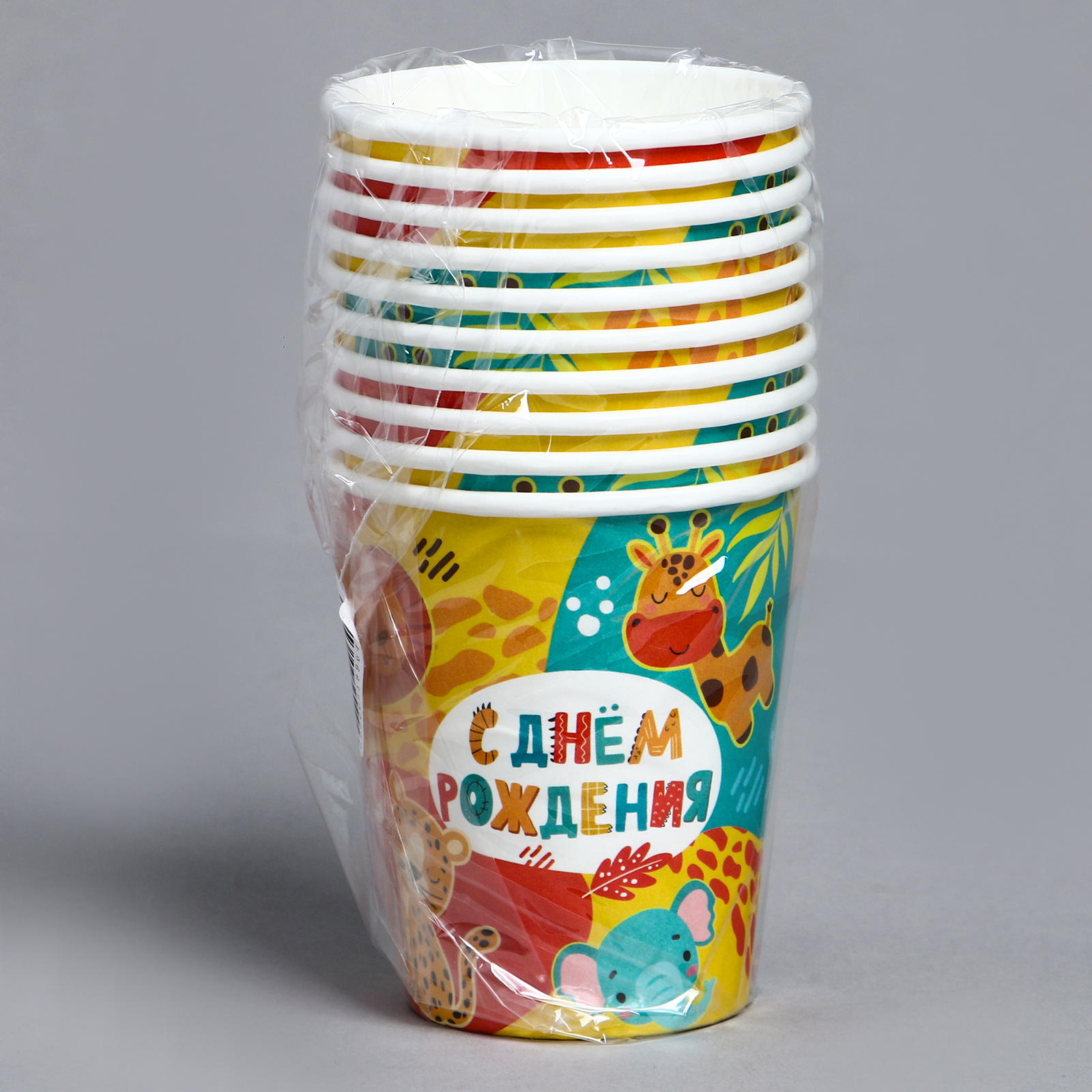 Стакан одноразовый бумажный "с днём рождения", 250 мл