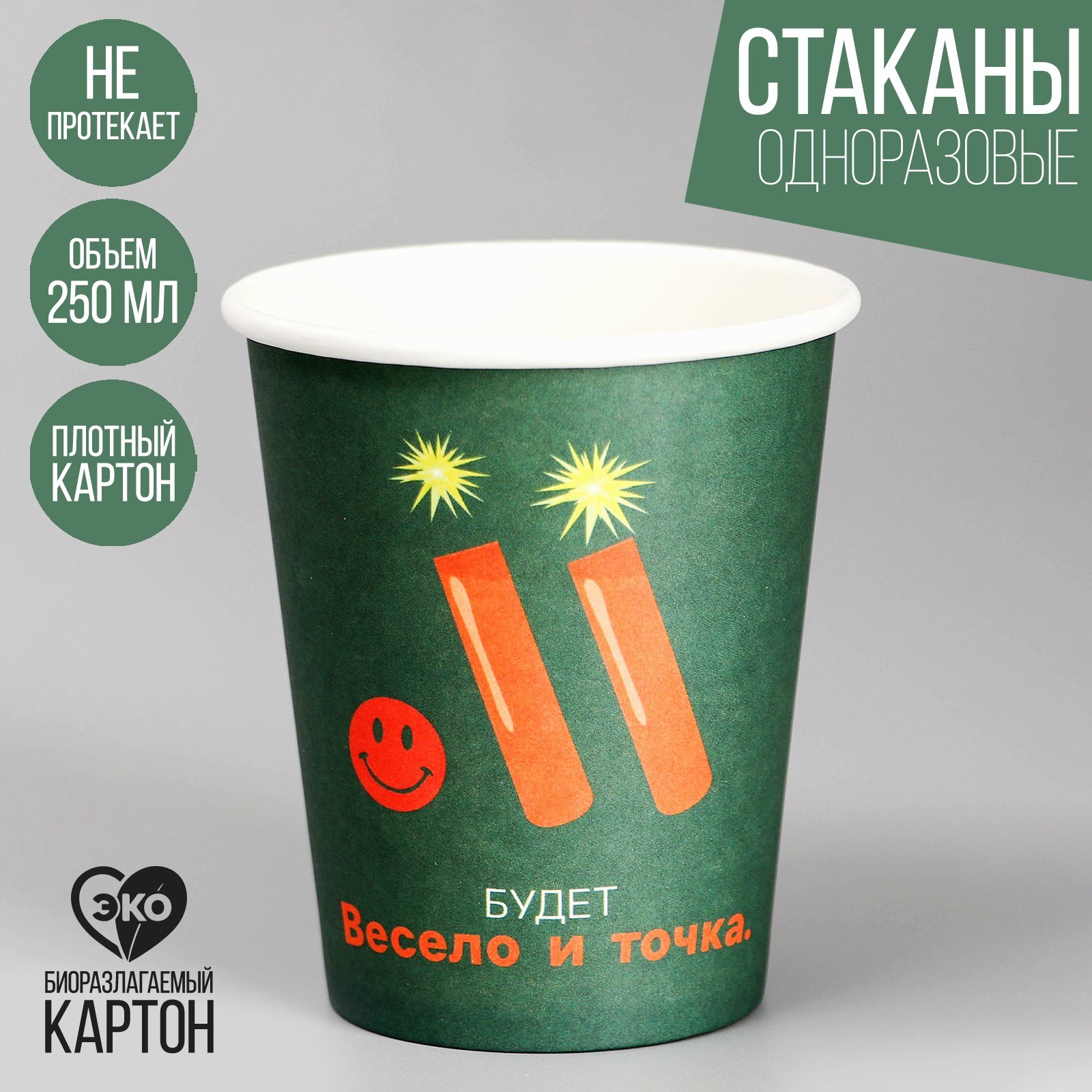 Стакан одноразовый бумажный "будет весело", 250 мл