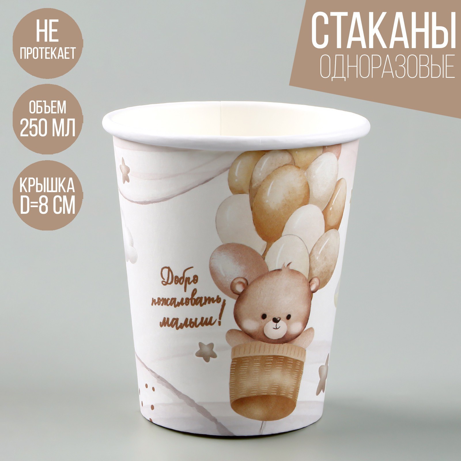 Стакан одноразовый бумажный "добро пожаловать", 250 мл