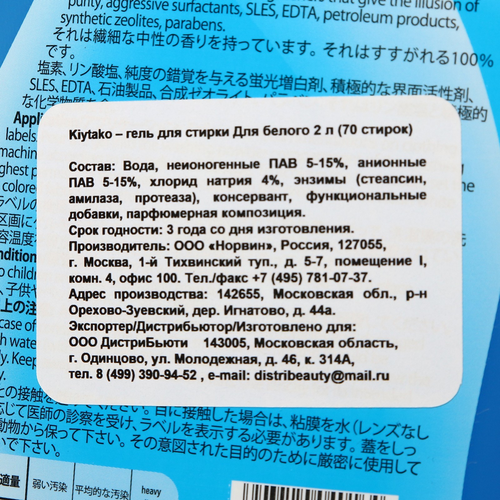 Жидкое средство для стирки Kiytakoo для белого белья, 2 л