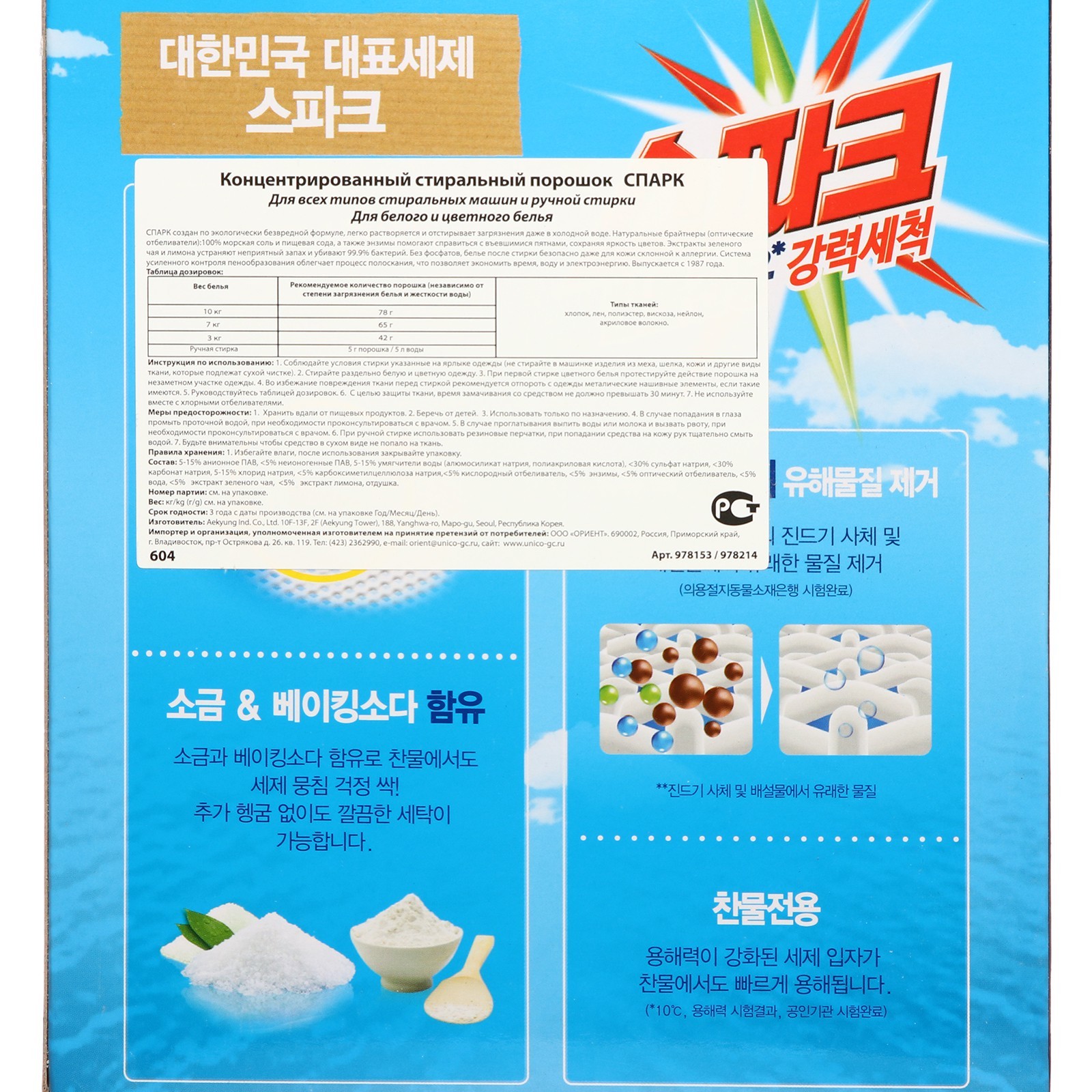 Стиральный порошок spark, 1 кг. Для стиральный машин вертикальной загрузкой, полуавтоматов, ручной стирки. Тщательно отстирывает белое и цветное белье, оказывает дезинфицирующее и отбеливающее действие. Благодаря содержанию пищевой соды порошок тщательно удаляет загрязнения. Обладает высоким дезодорирующим эффектом, поскольку впитывает в себя гранулы неприятного запаха. Благодаря глубокому проникновению поверхностно активных веществ и ферментов двойной мощности порошок тщательно удаляет загрязнения даже в холодной воде. Специальная система пенообразования улучшает результат, не оставляет осадка в стиральной машине. Мощные ферменты и компоненты лимона и природного зеленого чая предотвращает появление неприятного запаха и уничтожают 99, 9% вредных микробов. Благодаря содержанию природных минералов безопасен для ткани и кожи рук. Состав: ПАВ (более 15% но не менее 30%)(линейный алкилбензол (отрицательный ион), высококачественные спирты (положительный ион), альфа олефины, натриевая соль жирной кислоты), цеолиты, алкализ, кислородный отбеливатель, поликарбоксилат, ферменты, оптический отбеливатель, ароматизатор. Вес, кг: 1 Назначение: Для всех видов тканей Вид стирки: Для всех видов стирки : 0 Температурное ограничение: Нет  развернуть описание ▼