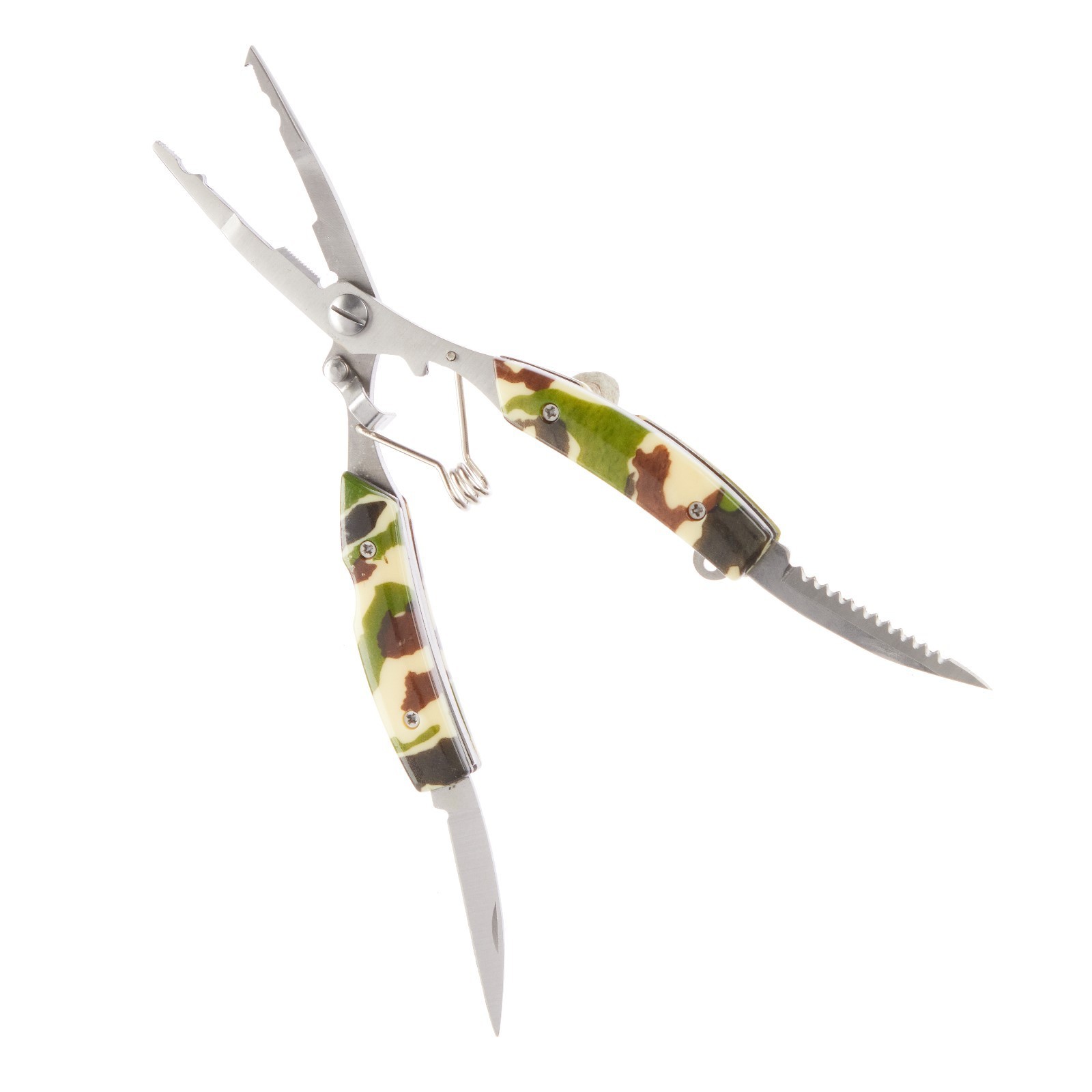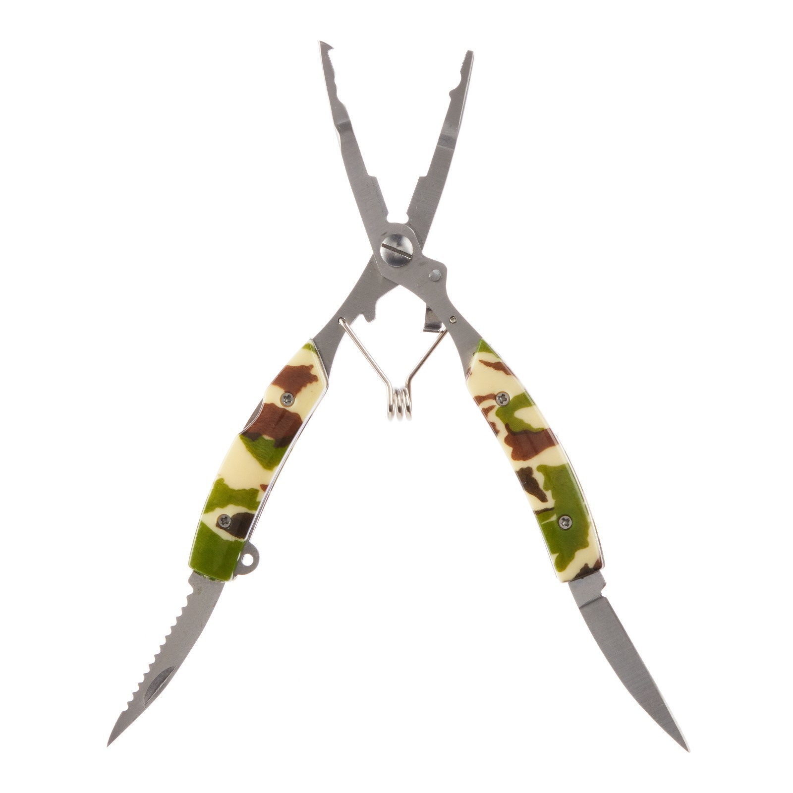 Мультитул 5в1 рыболовный, камуфляж 16см. Мультитул рыблолвный 5в1 пригодится, чтобы: Перекусывать леску, Подцеплять рыбу, Ремонтировать удочку. Также мультитул оснащён ножом и ножом-пилой. Цвет: Камуфляж Количество функций: 5 Материал: Металл Материал: Пластик Наличие чехла: Нет Вид: Мультитулы  развернуть описание ▼