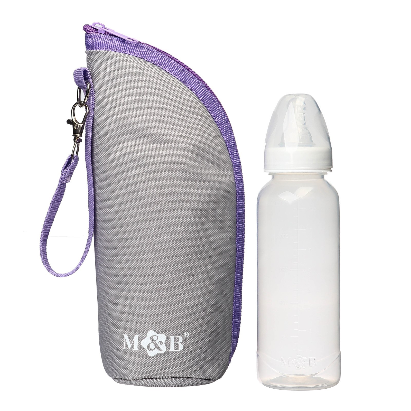 Термосумка для бутылочки m&b на молнии цвет серый/лаванда. Цвет: Серый С ручками: Да Объём, л: 250 Объём, мл: 250 Материал: Текстиль Материал: ПВХ Материал: Пластик Антиколиковая система: Нет Вид: Термосумка  развернуть описание ▼