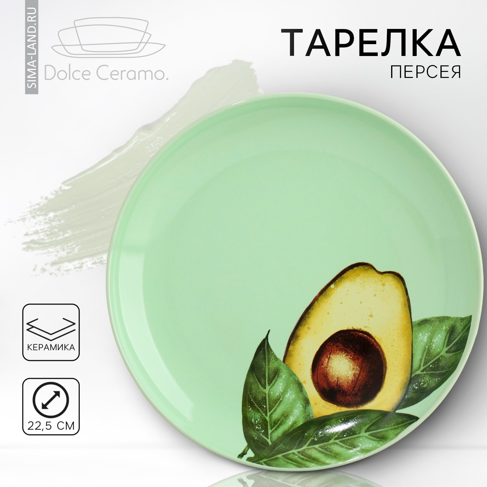 Тарелка керамическая «авокадо», 22.5 см, цвет зелёный