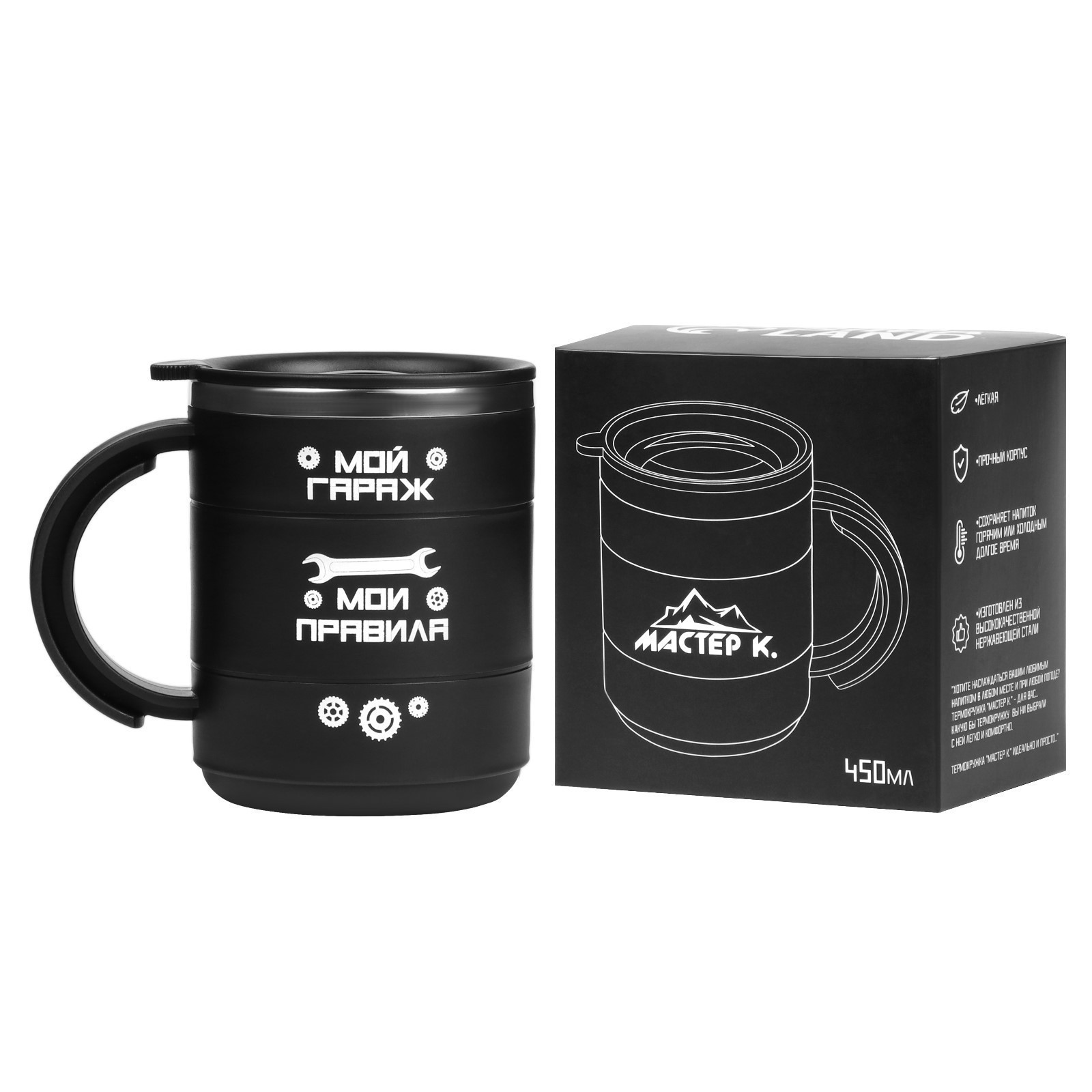 Термокружка, 450 мл, поход "мой гараж - мои правила", сохраняет тепло 2 ч, черная