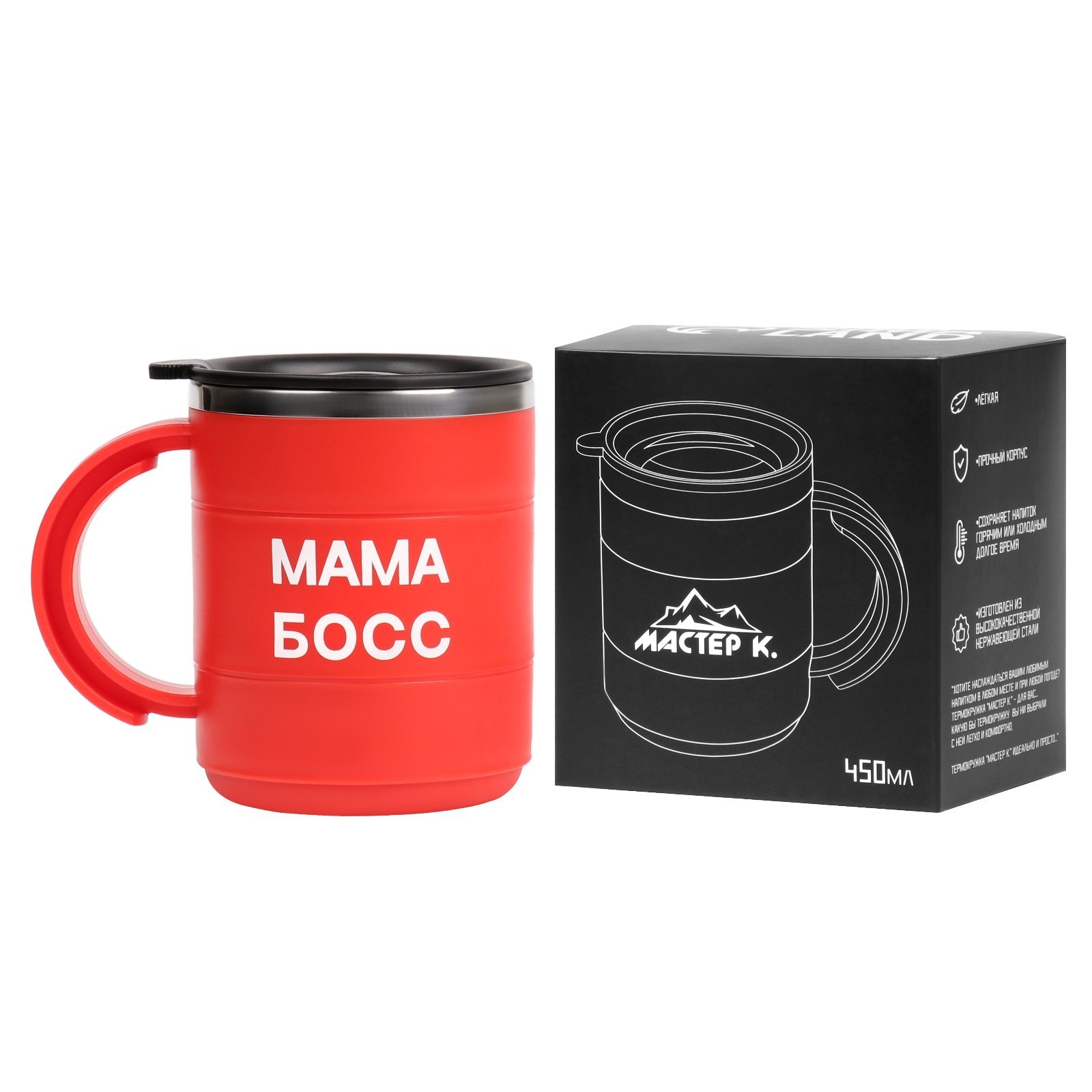 Термокружка, 450 мл, поход "мама босс", сохраняет тепло 2 ч, красная