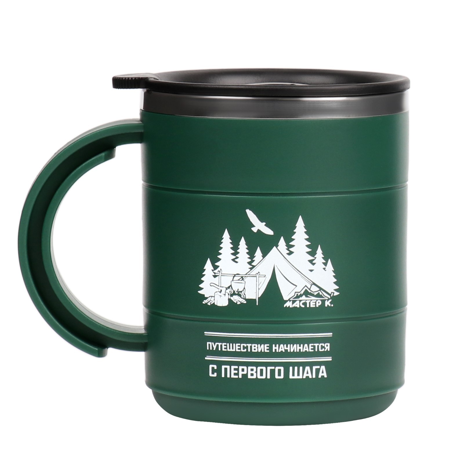 Термокружка, 450 мл, поход "путешествие начинается..", сохраняет тепло 2 ч, зеленая